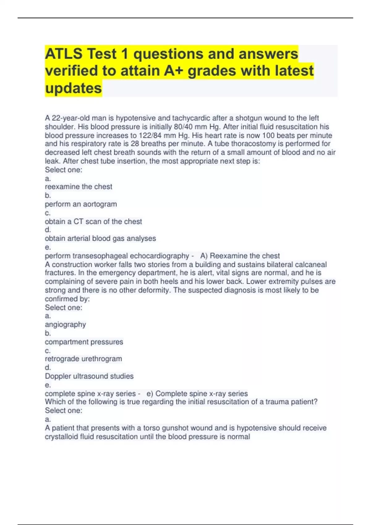 ATLS Complete Exam Prep Pack 2023–2026 — Practice Tests, Post Tests & 10th Edition Verified Q&AsATLS Complete Exam Prep Pack 2023–2026 — Practice Tests, Post Tests & 10th Edition Verified Q&AsATLS Complete Exam Prep Pack 2023–2026 — Practice Tests, Post Tests & 10th Edition Verified Q&AsATLS Complete Exam Prep Pack 2023–2026 — Practice Tests, Post