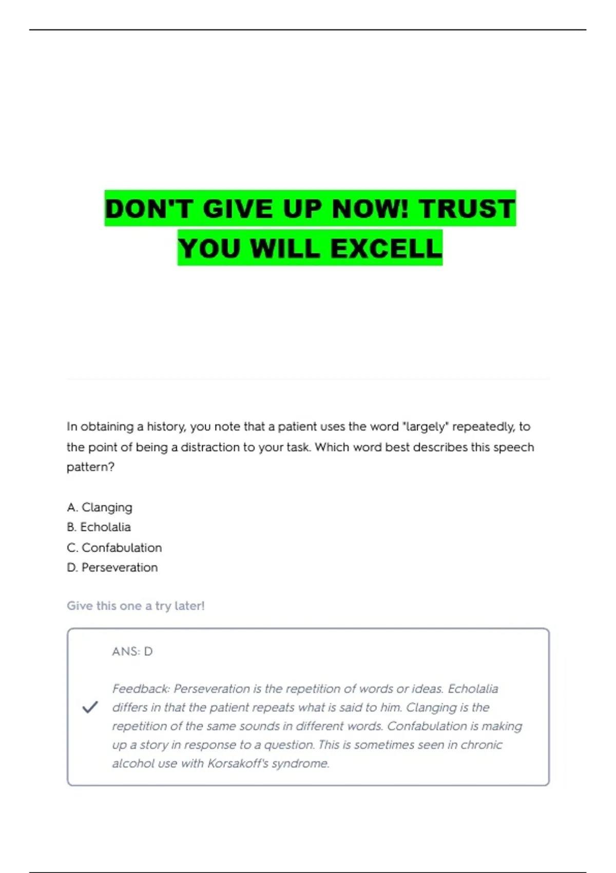 NUR 634 PSYCH QUESTIONS WITH COMPLETE ANSWERS