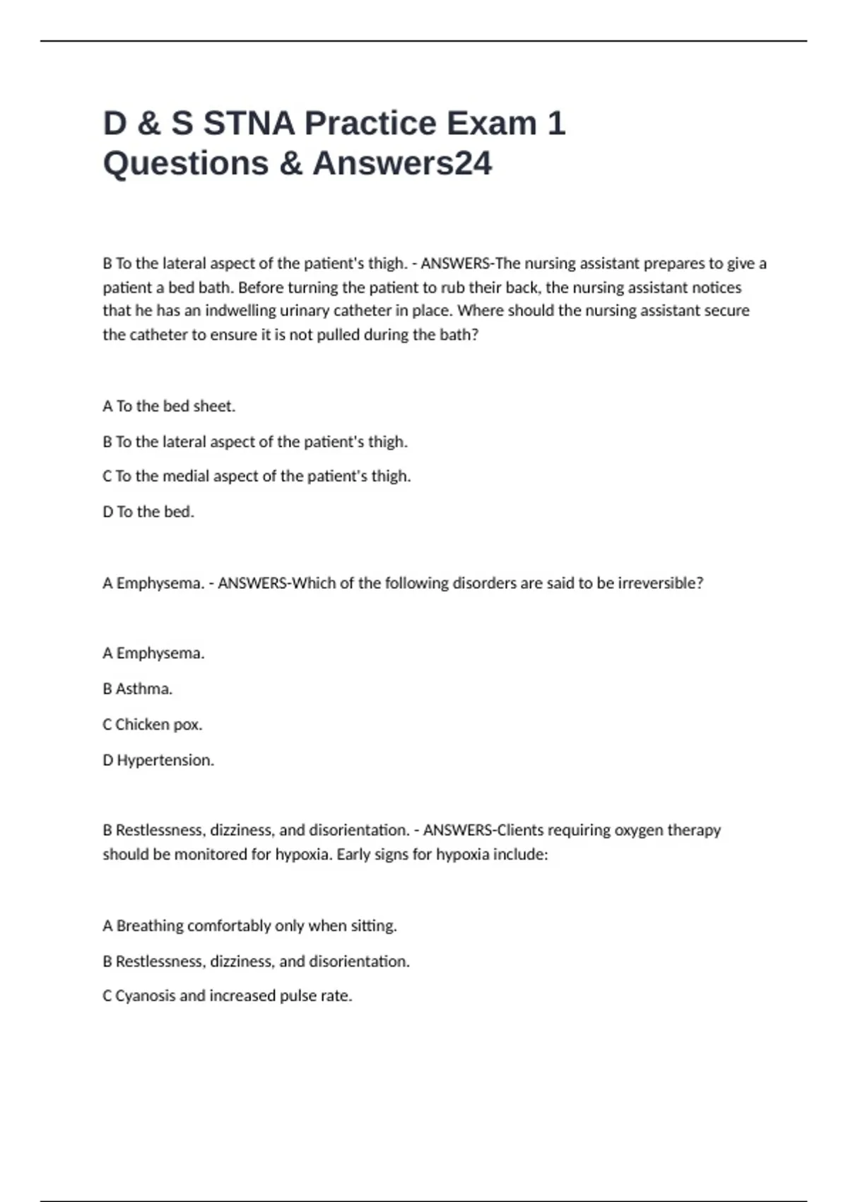 D & S STNA Practice Exam 1 Questions & Answers