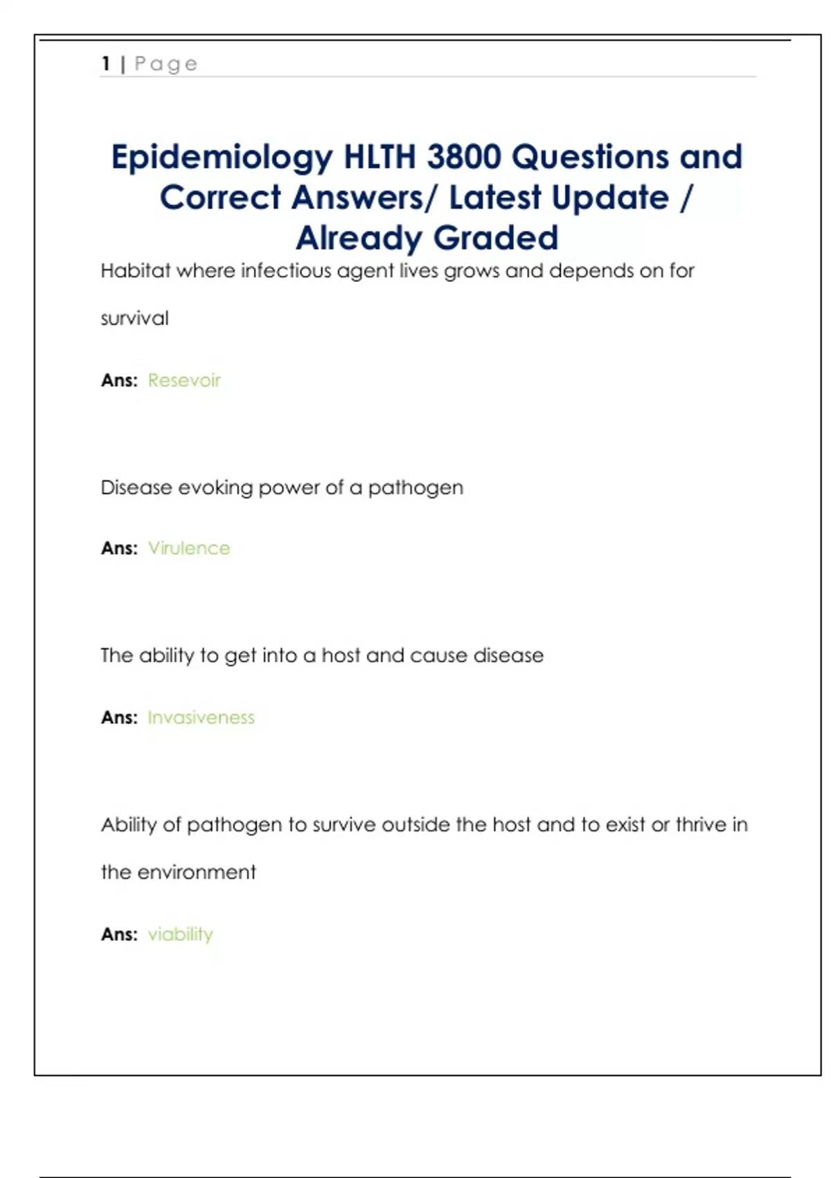 Epidemiology Questions and Correct Answers/ Latest Update / Already Grade