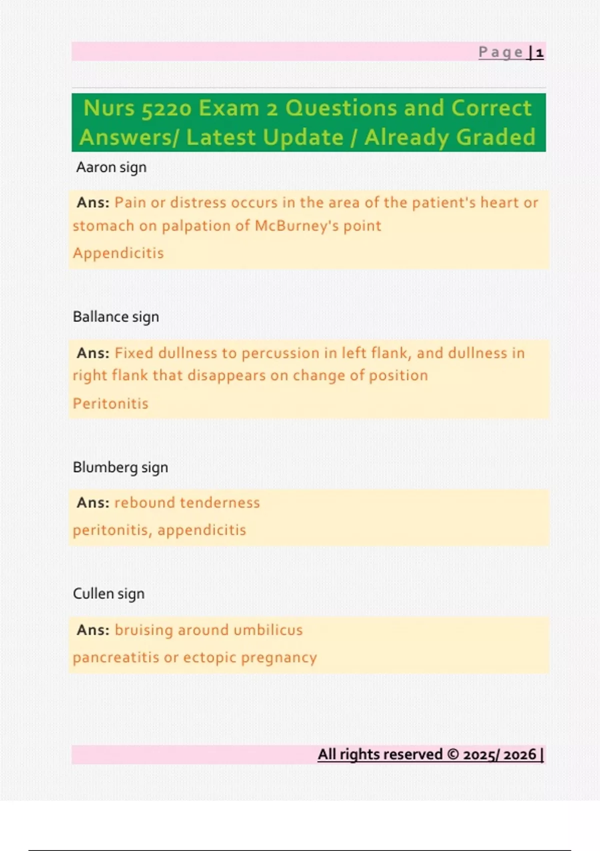 NURS 5220 Questions and Correct Answers/ Latest Update / Already Graded
