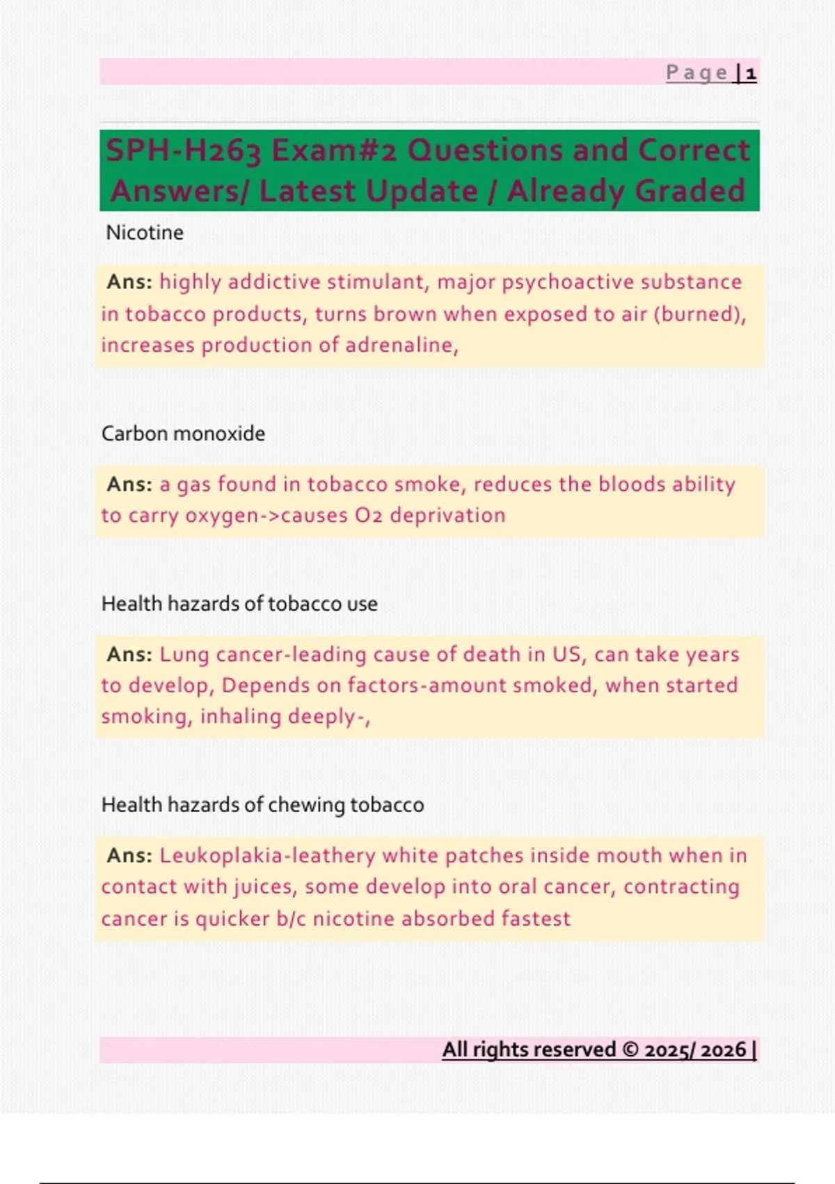 SPH-H263 Questions and Correct Answers/ Latest Update / Already Graded