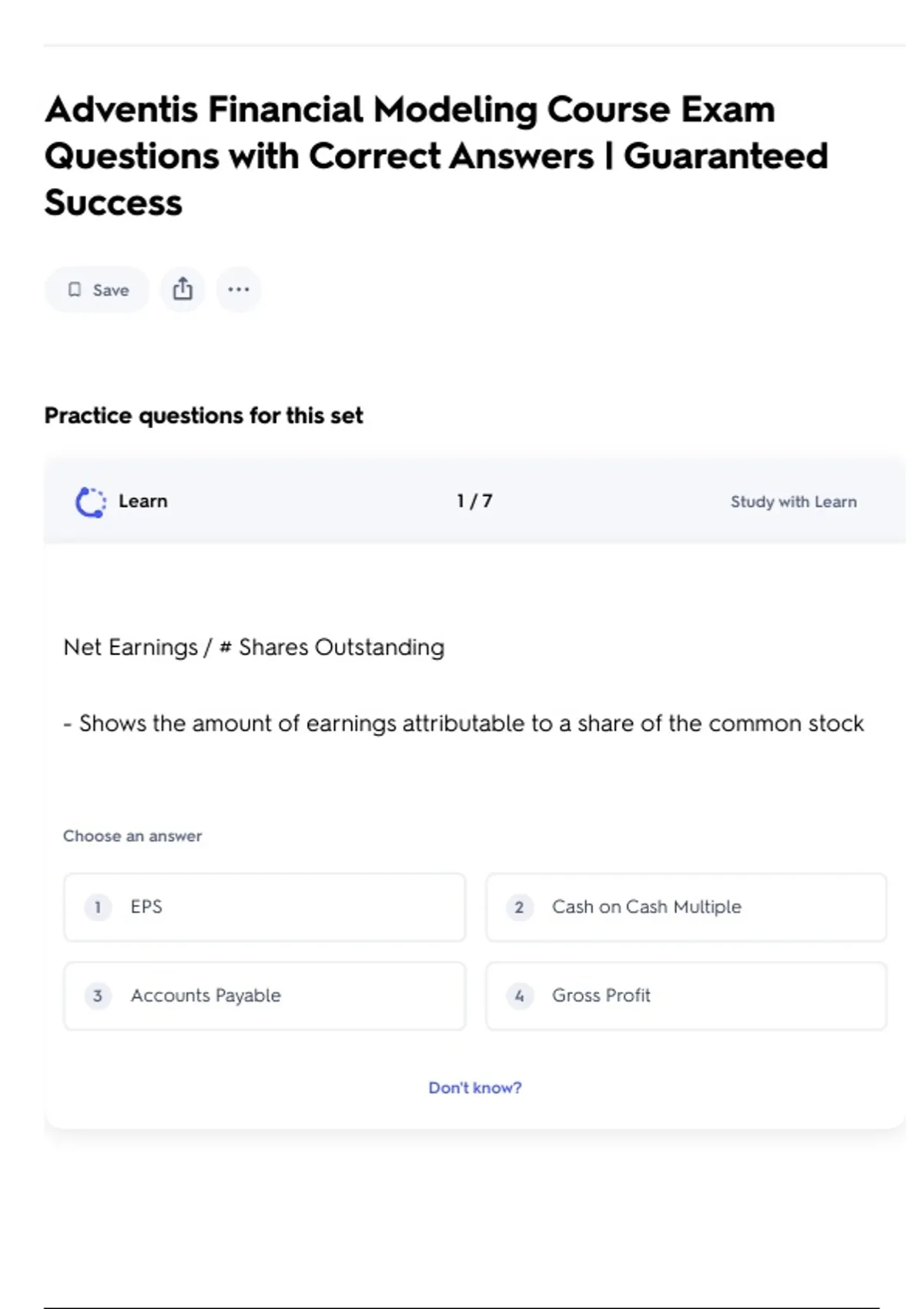 Adventis Financial Modeling Course Exam Questions with Correct Answers | Guaranteed Success 2 Exam (elaborations) Adventis Financial Modeling Level 1 Certification Exam Questions with Correct Answers | Guaranteed Success 3 Exam (elaborations) Adventis Financial Modeling Certification Exam Questions with Correct Answers | Guaranteed Success
