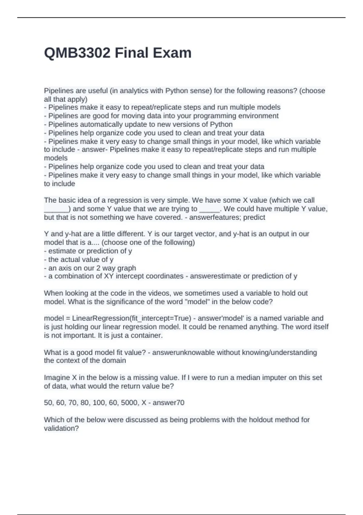 Exam (elaborations) QMB3302 Midterm Questions and Answers Exam (elaborations) QMB3302 EXAM QUESTIONS WITH CORRECT ANSWERS Exam (elaborations) qmb 3302 test questions and answers Exam (elaborations) QMB3302 Midterm Guide Questions with Solutions Exam (elaborations) QMB3302 TEST QUESTIONS AND ANSWERS Exam (elaborations) QMB3302 M
