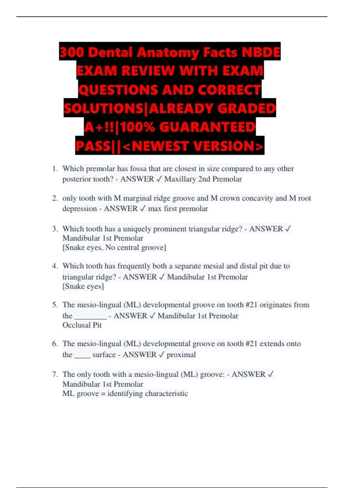 BUNDLE FOR Dental Anatomy EXAM REVIEW WITH EXAM QUESTIONS AND CORRECT SOLUTIONS|ALREADY GRADED A+!!|100% GUARANTEED PASS|| NEWEST VERSION