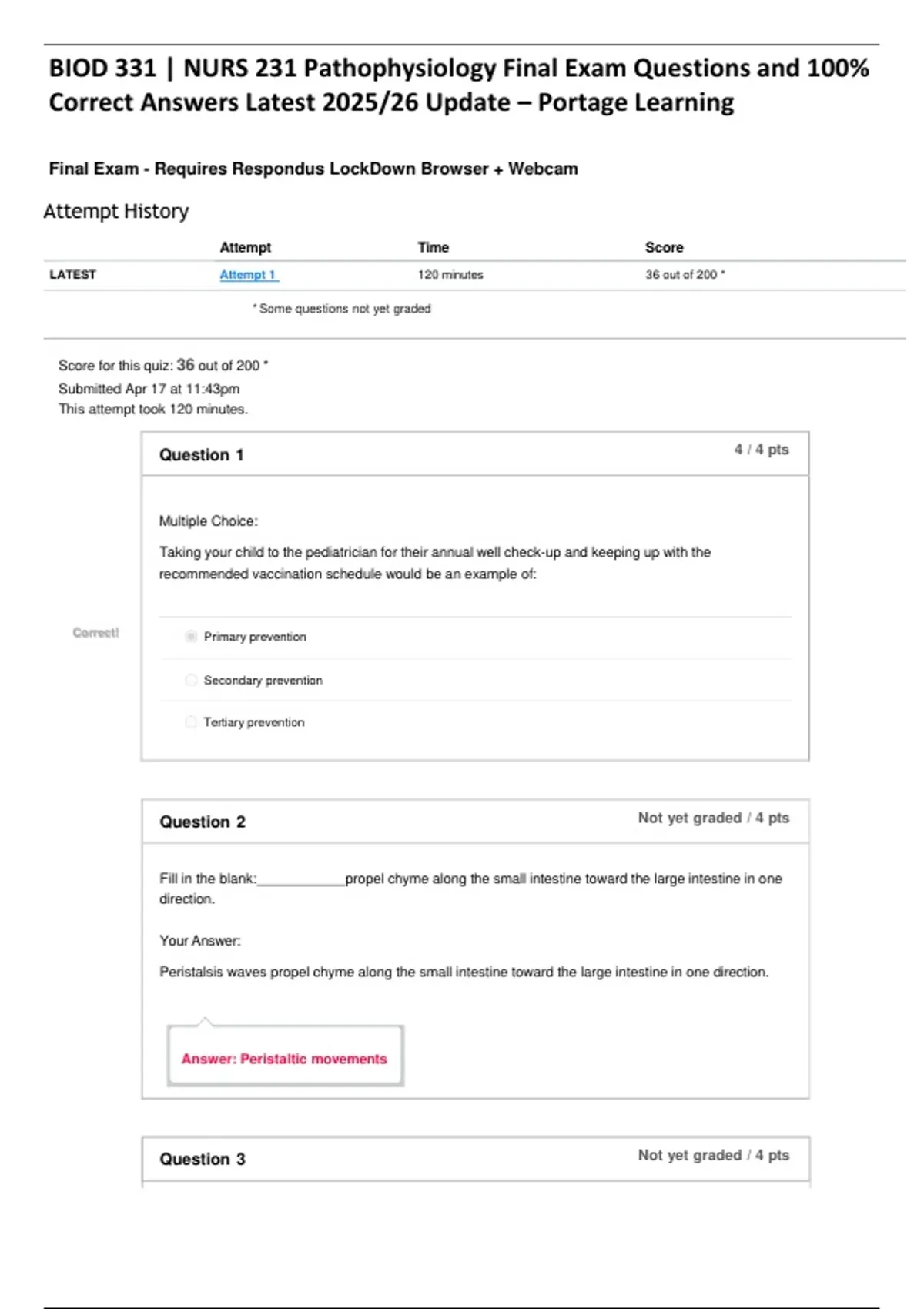 BIOD 331 | NURS 231 Pathophysiology Final Exam Questions and 100% Correct Answers Latest 2025/26 Update – Portage Learning