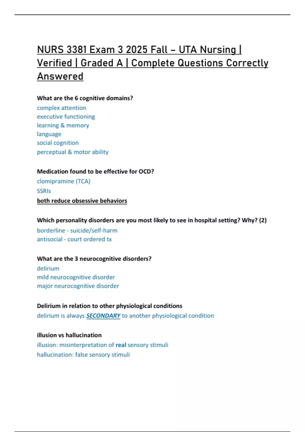 NURS 3381 EXAM 2 2025 LATEST FALL SESSION | UNIVERSITY OF TEXAS AT ARLINGTON| APPROVED EXAM |GRADED A