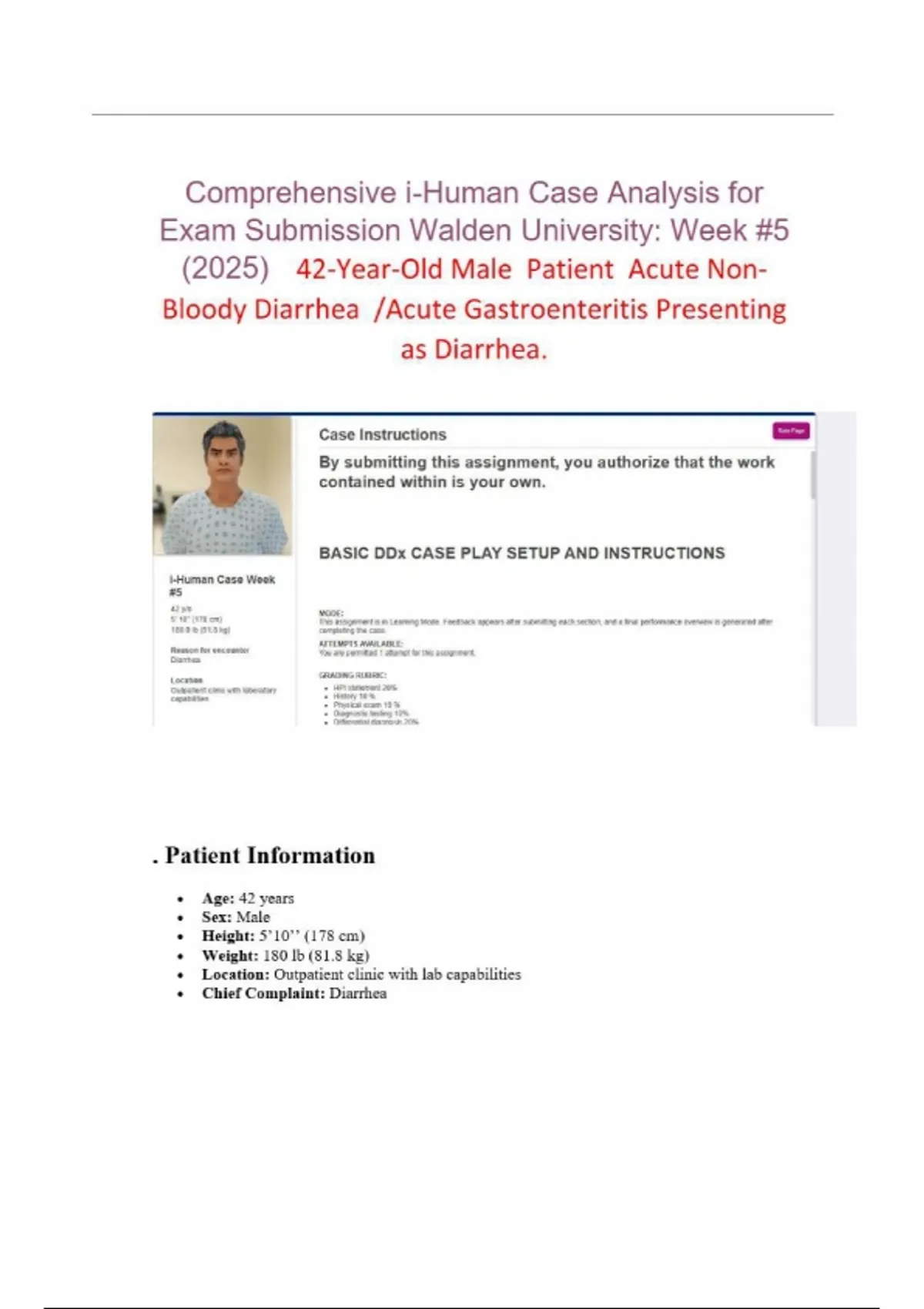 Comprehensive iHuman Case Analysis of Diarrhea in a 42-Year-Old Male | Week #5