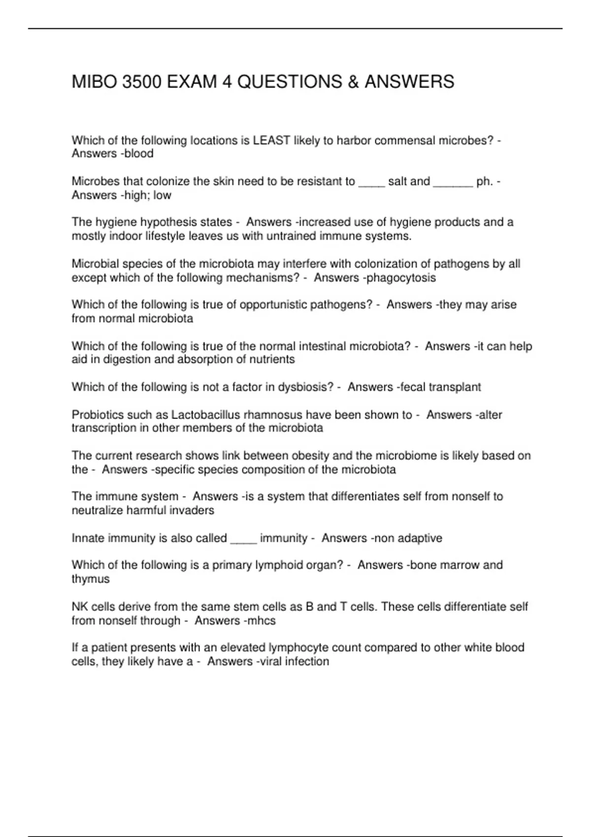 1 Exam (elaborations) MIBO 3500 EXAM 4 QUESTIONS & ANSWERS 2 Exam (elaborations) MIBO 3500 QUIZ -1 QUESTIONS & ANSWERS 3 Exam (elaborations) MIBO 3500 EXAM 1 QUESTIONS & ANSWERS 4 Exam (elaborations) MIBO 3500L EXAM 2 UGA QUESTIONS & ANSWERS 5 Exam (elaborations) MIBO 3500 EXAM 1- MICROBIOLOGY QUESTIONS 6 Exam (elaborations) MIBO 3500 EXAM 1 (