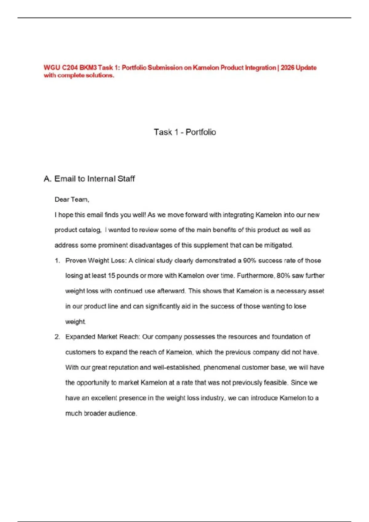 WGU C204 BKM3 Task 2: Presentation and Executive Summary WGU C204 BKM3 Task 1: Portfolio Submission on Kamelon Product Integration