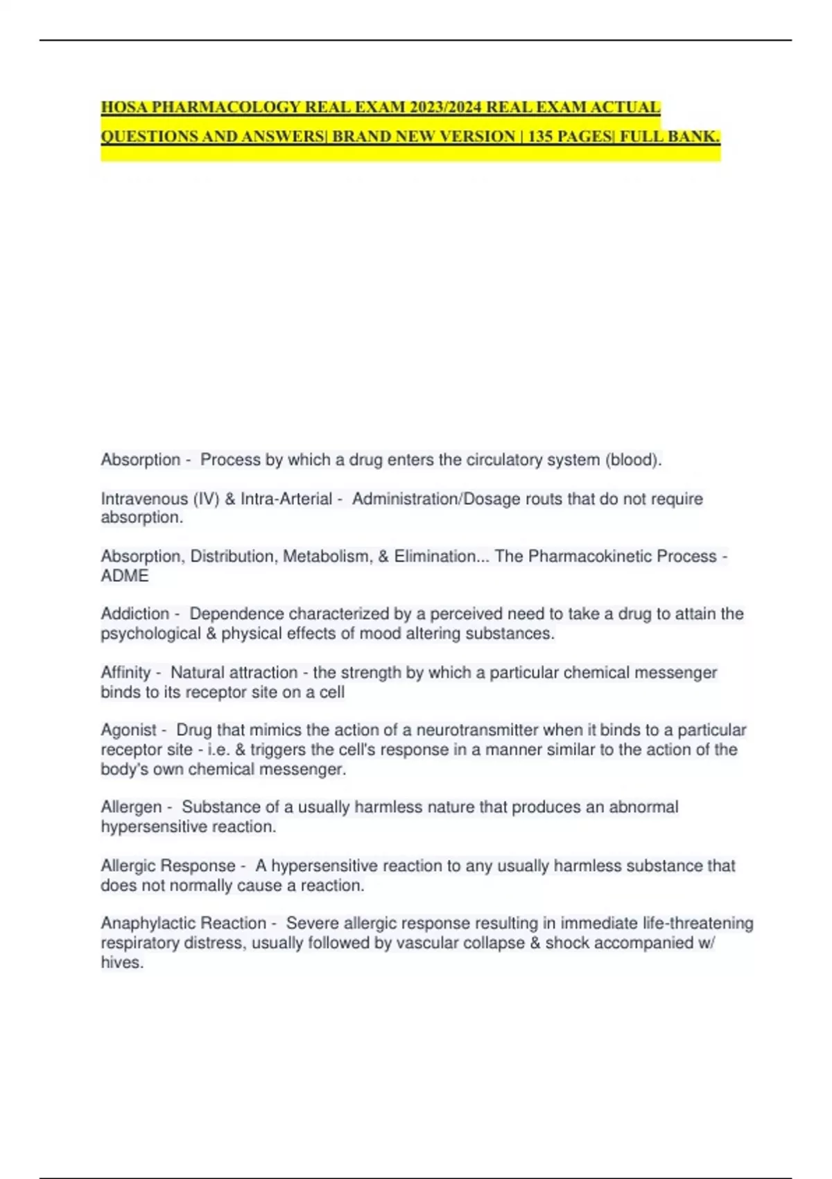 THE EASIEST WAY TO STUDY NURSING EXAMS,STUDY GUIDES,TEST BANKS, SOLUTION MANUALS AND QUALITY EXAMS IN MY STORE. ALWAYS LEAVE A REVIEW AFTER PURCHASING ANY DOCX SO AS TO MAKE SURE MY CUSTOMERS ARE 100% SATISFIED....ALL ARE WELCOME.