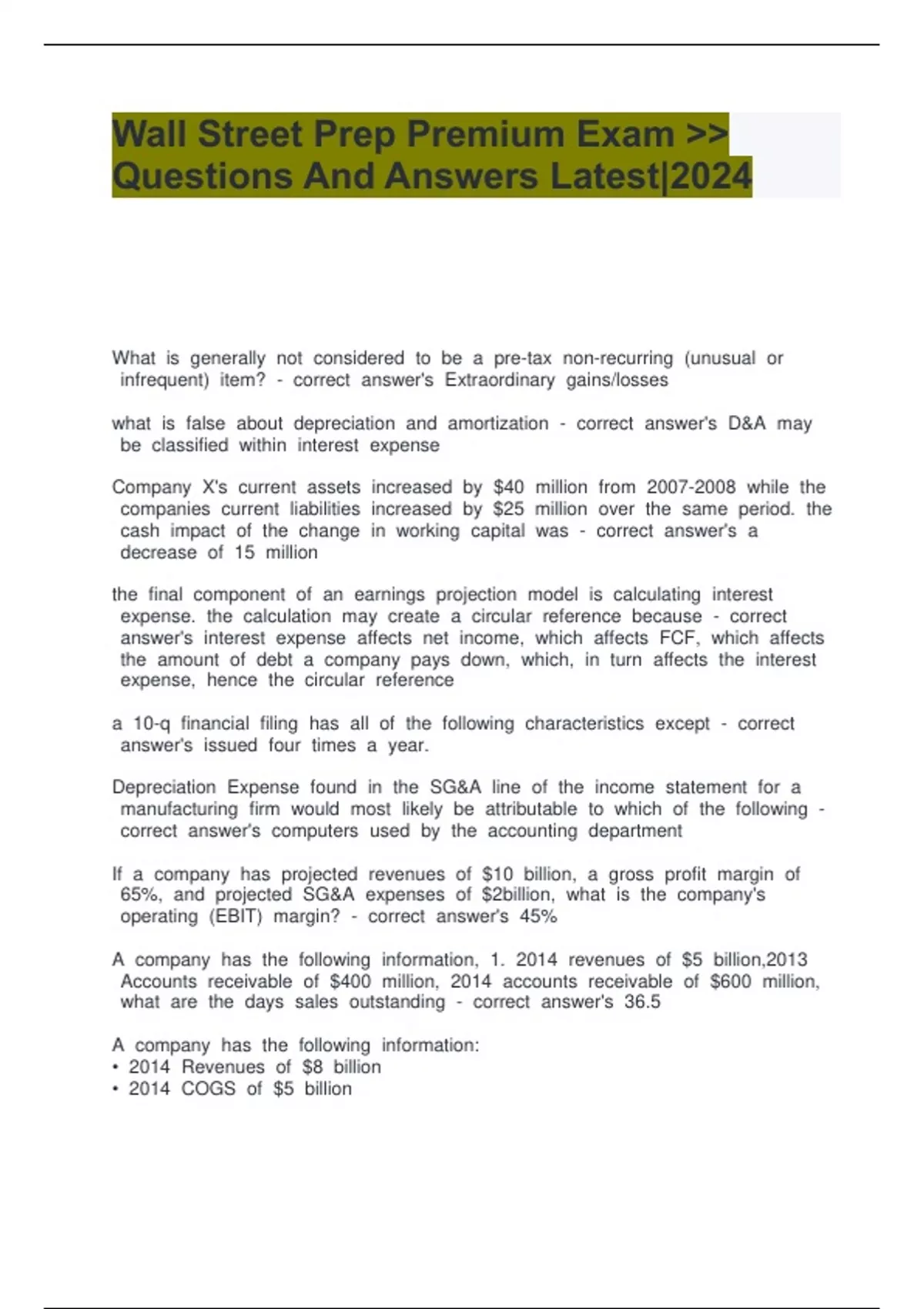 Wall Street Prep Premium Exam Questions And Answers Latest|2024