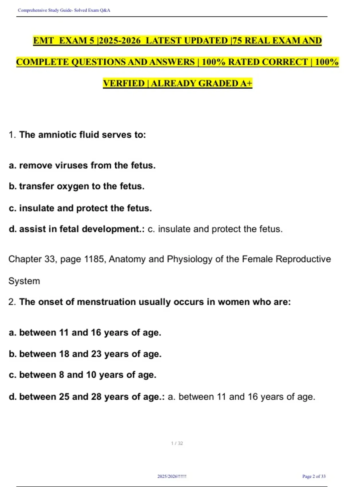 EMT Exam 5 2025–2026 Study Guide PDF – 75 Real Exam Questions with 100% Correct Solutions