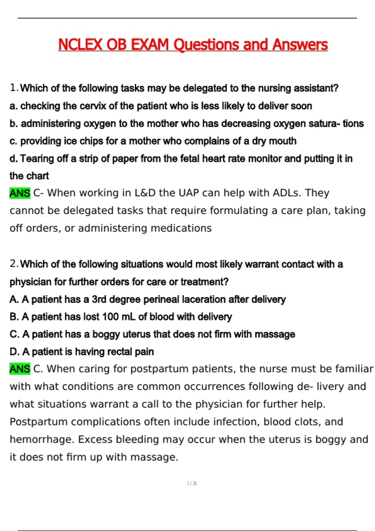NCLEX OB EXAM Latest 2026 Actual Questions and Verified Answers (2026 / 2027) A+ Grade 100% Guarantee Verified by Experts