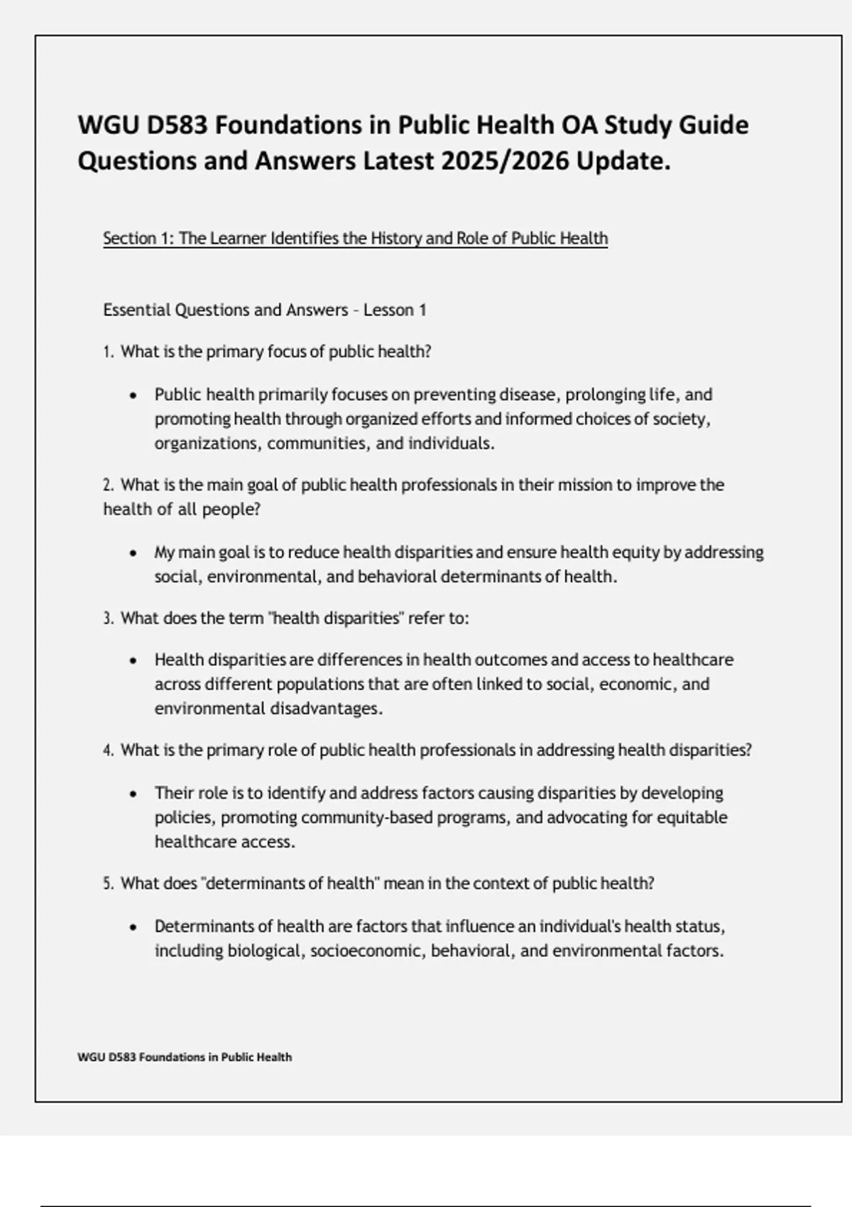 WGU D583 Foundations in Public Health Exam Questions and Answers Latest 2026 Update.