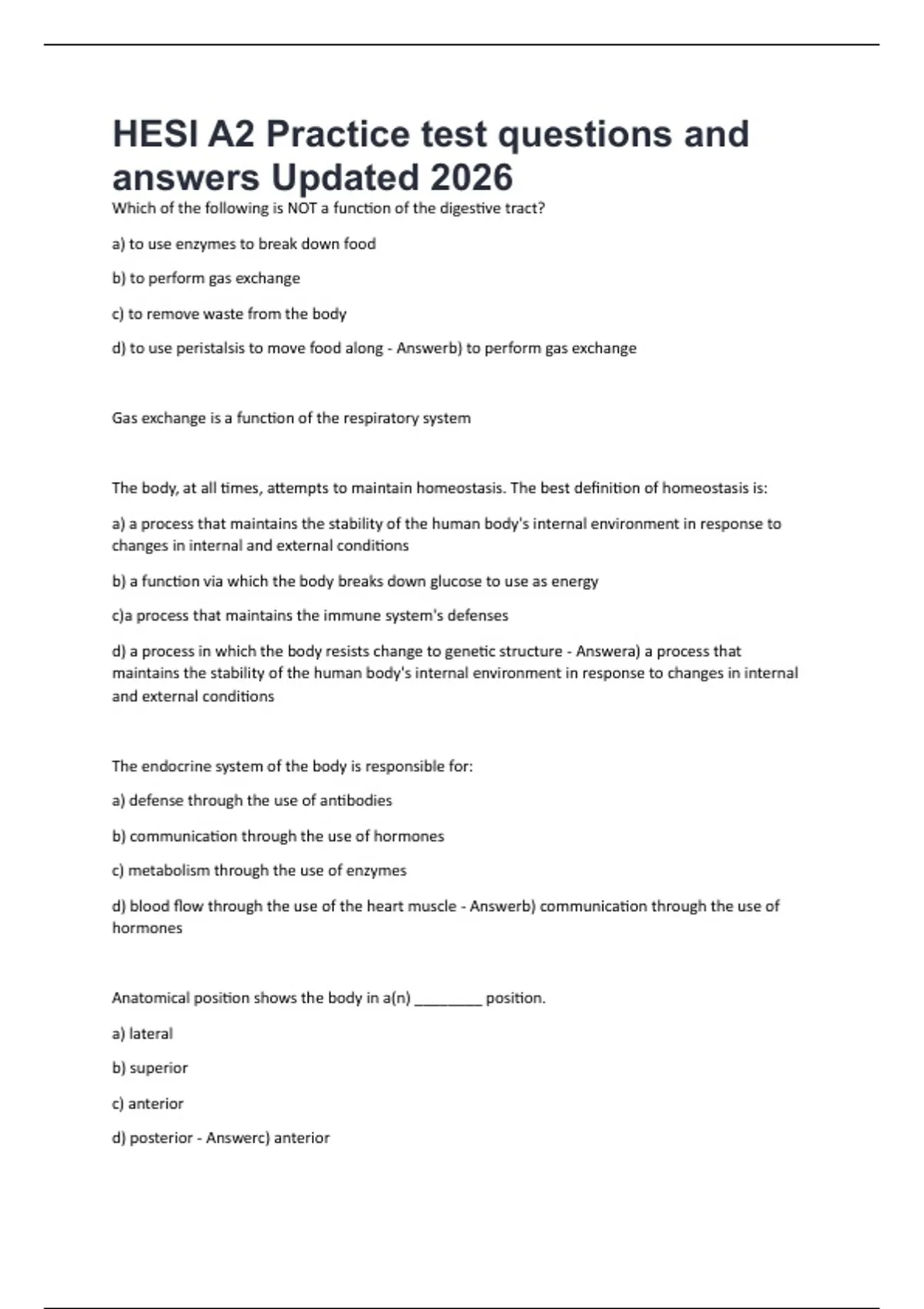 Summary HESI exam reading practice Questions and Answers Updated 2026