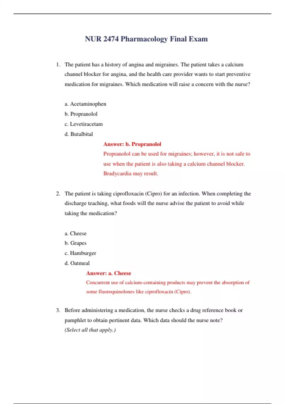 NUR2474 Final Exam - Pharmacology for Professional Nursing Final Exam Review Questions With Correct Answers 2 Exam (elaborations) NUR 2474 Pharmacology Final Exam NCLEX Style Practice Questions and Answers 100% Verified| New Update Graded A+ 3 Exam (elaborations) Nur2474 Pharmacology Final Exam Questions and Answers 100% Verified| New Update Grad