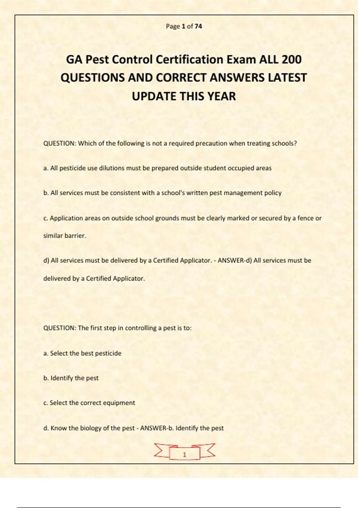 GA Pest Control Certification Exam