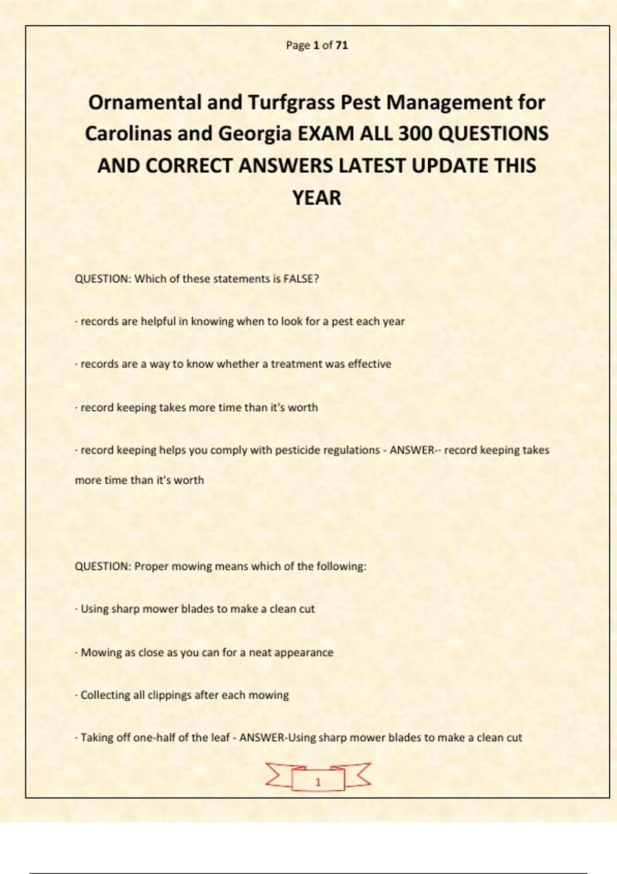 Ornamental and Turfgrass Pest Management for Carolinas and Georgia EXAM ALL 300 QUESTIONS AND CORRECT ANSWERS LATEST UPDATE THIS YEAR
