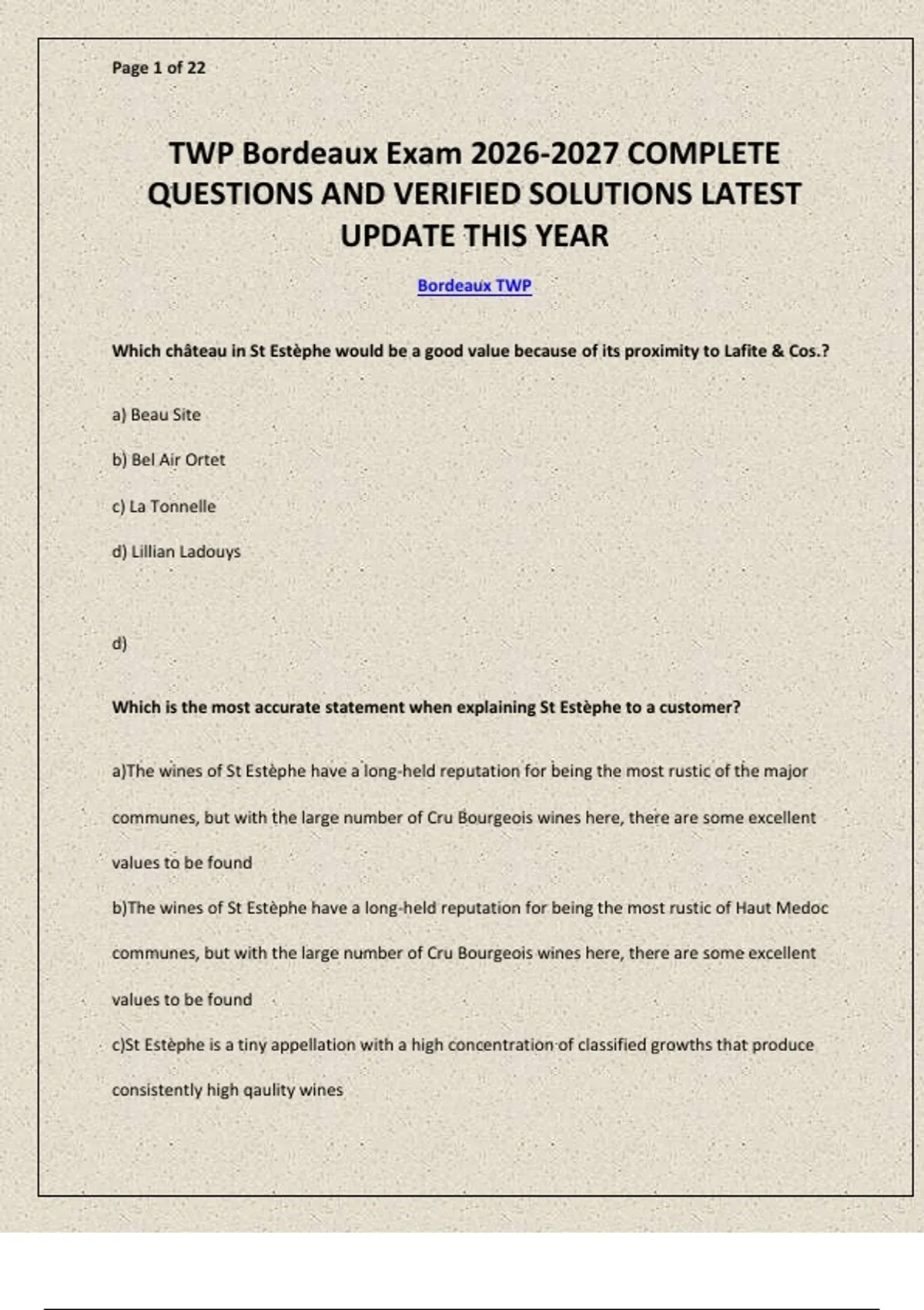 TWP Bordeaux Exam
