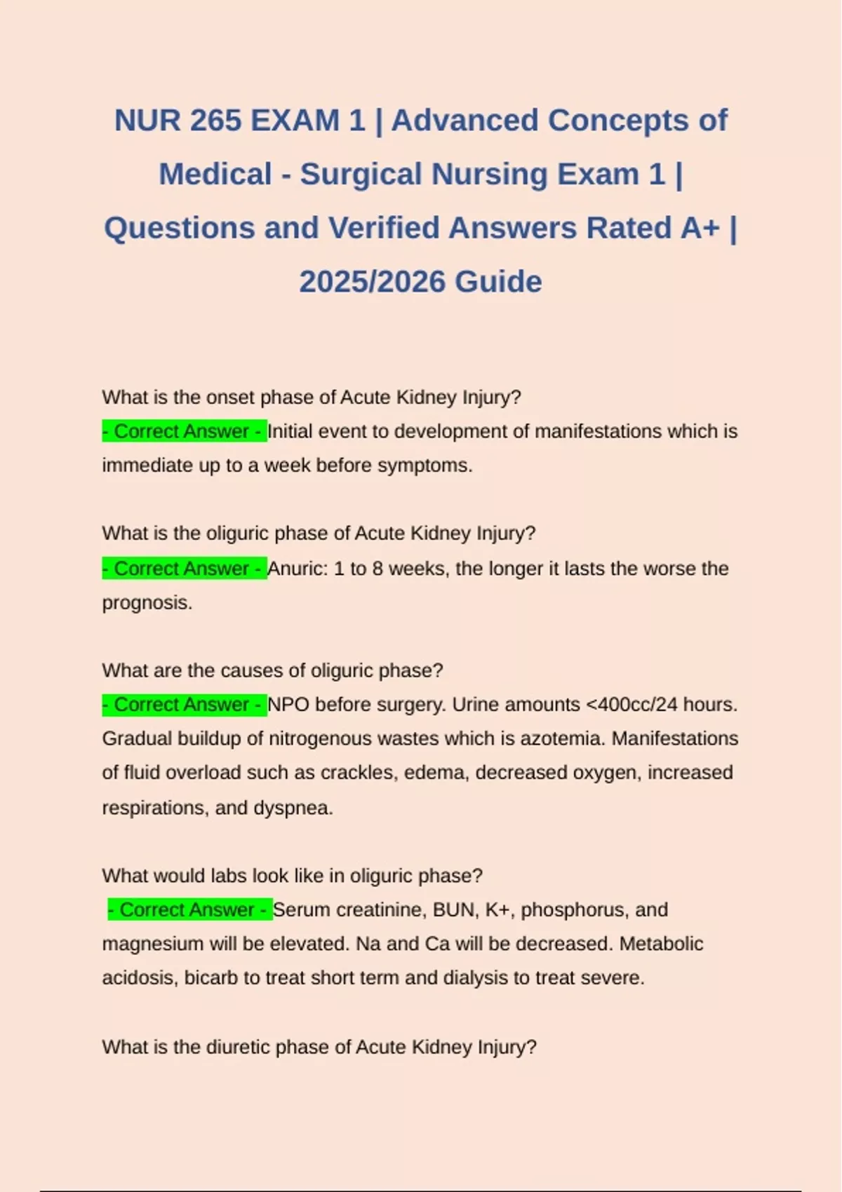 NUR 265 Exam 1 | Advanced Concepts of Medical - Surgical Nursing Exam 1 | Questions and Verified Answers Rated A+ | 2025/2026 Guide