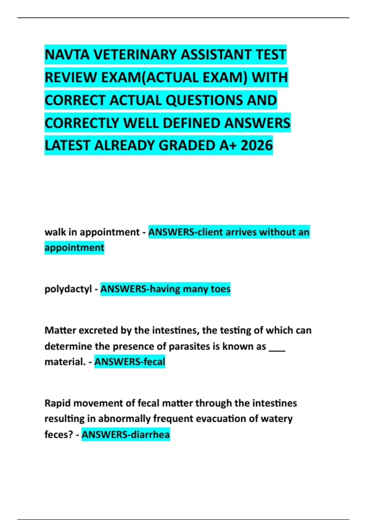 BUNDLE FOR NAVTA EXAMS LATEST BUNDLE FOR NAVTA EXAMS LATEST