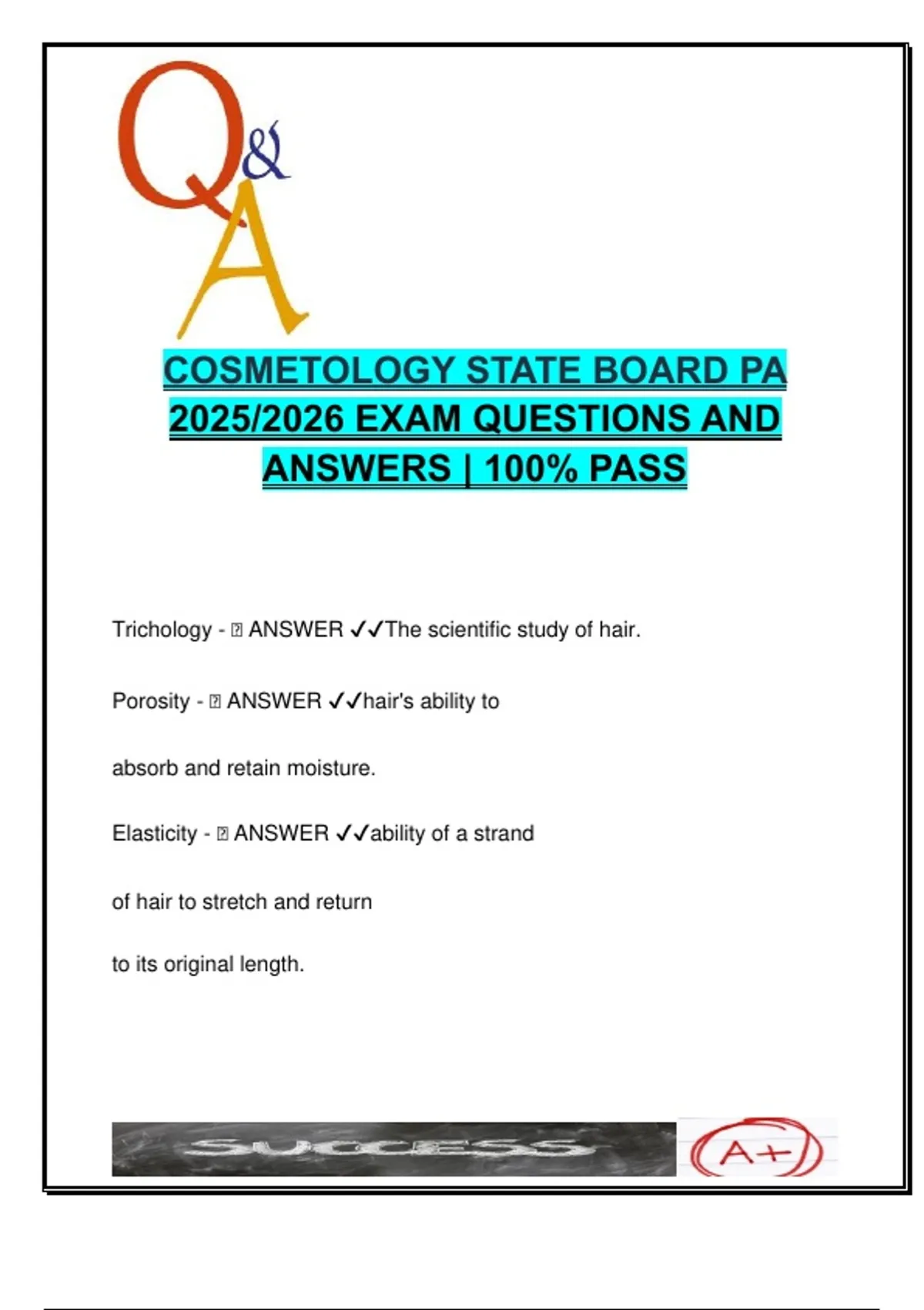 PA State Board Cosmetology Law Exam 2025/2026 – 100+ Questions with Verified Answers | Licensing, Salons, Teachers, Students, Sanitation