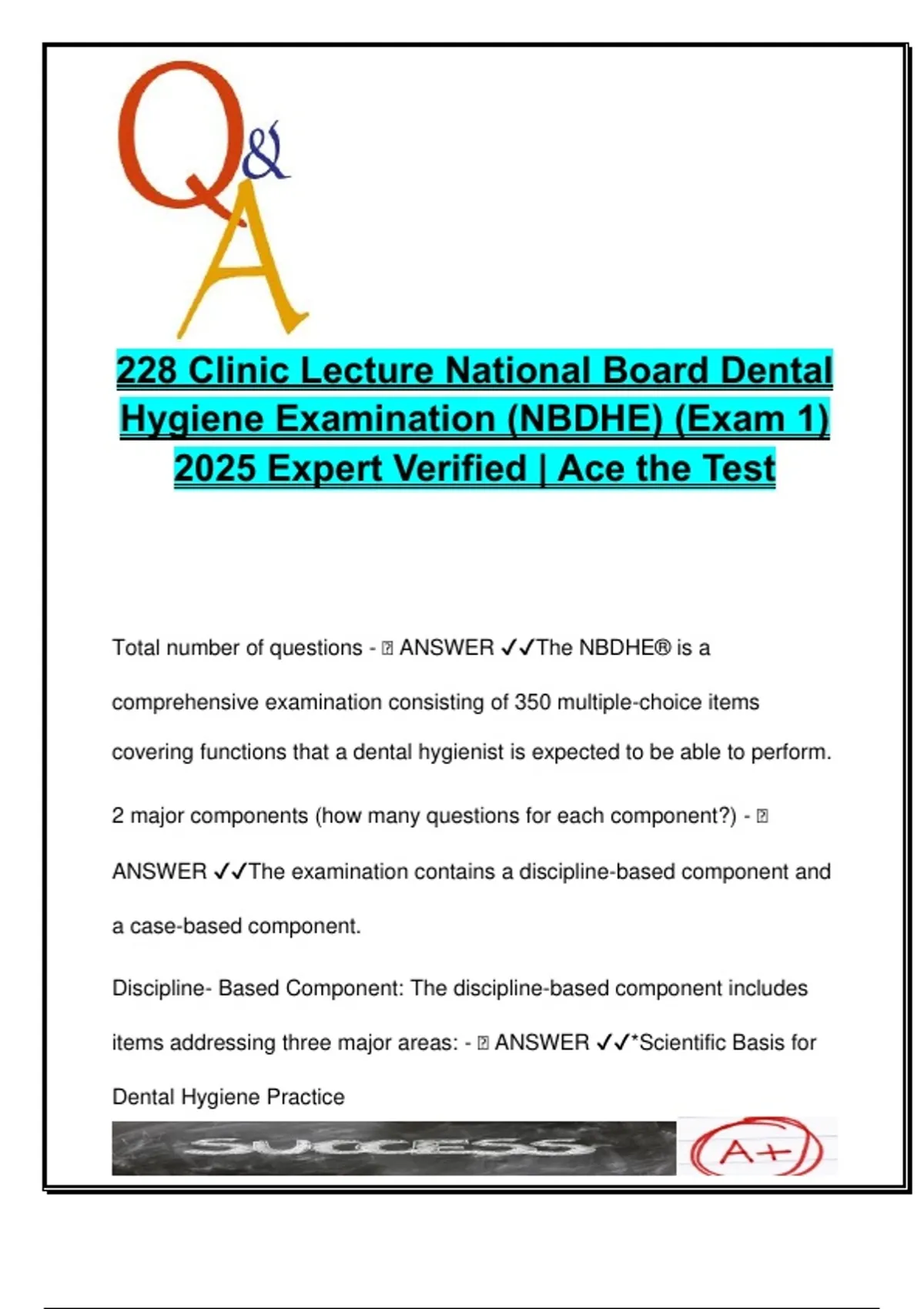 NBDHE 2025/2026 – National Board Dental Hygiene Exam | 250+ Questions with Answers | Periodontology, Radiology, Ethics, Pharmacology, Community Health