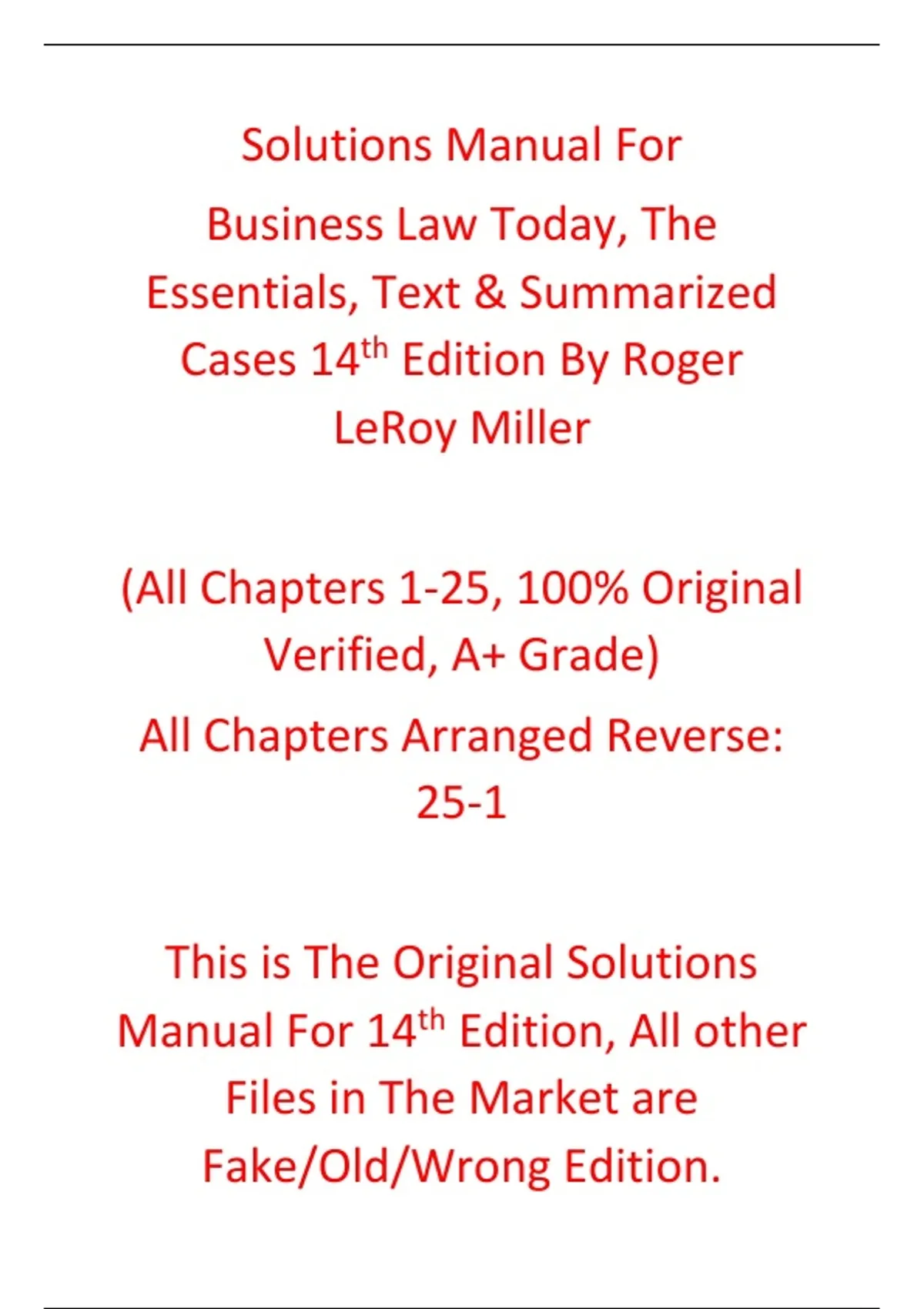 Solutions Manual with Test Bank Business Law Today The Essentials Text & Summarized Cases 14th Edition By Roger LeRoy Miller Solutions Manual with Test Bank Business Law Today The Essentials Text & Summarized Cases 14th Edition By Roger LeRoy Miller