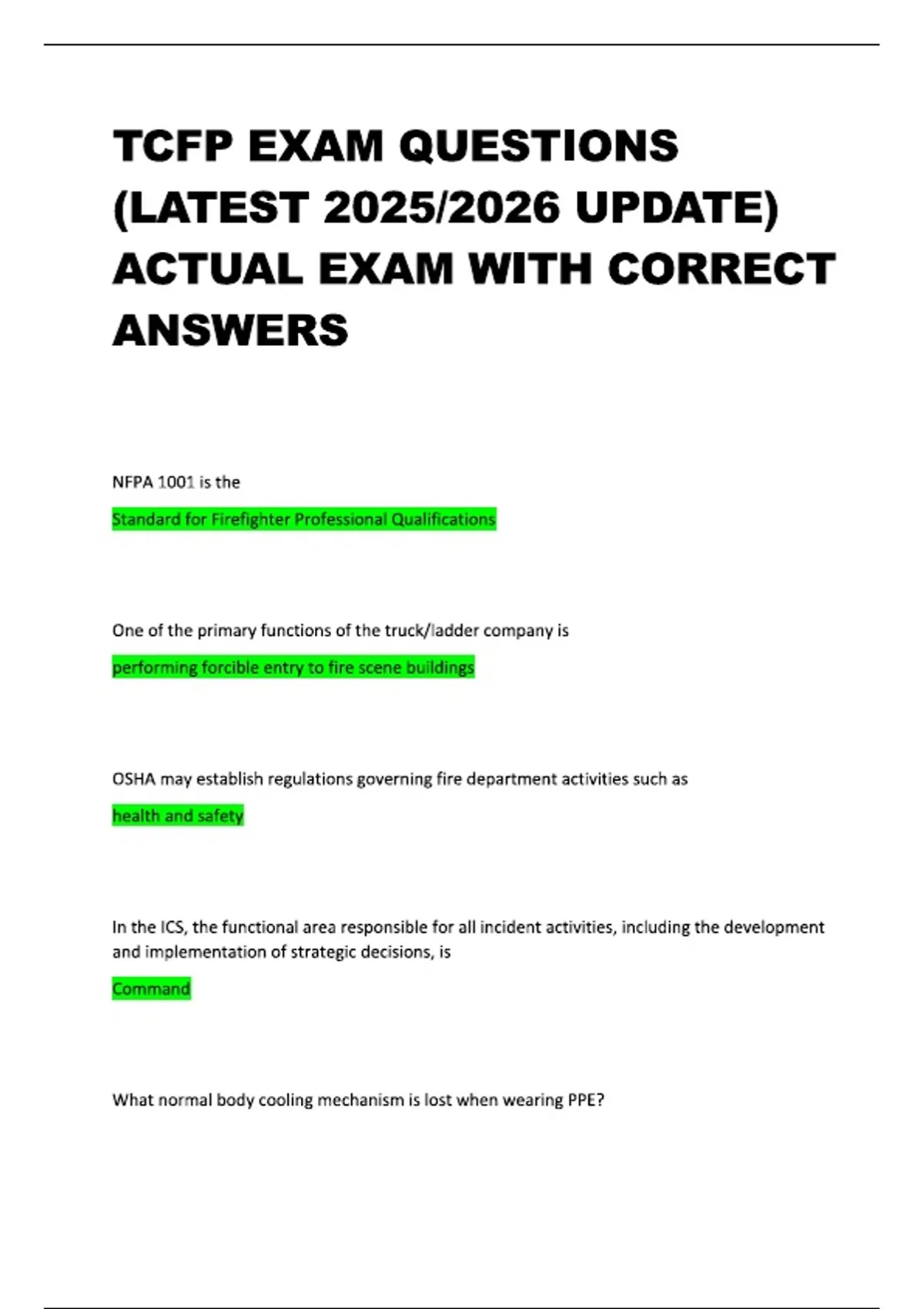 TCFP Exam Questions Complete Study Guide with Answers Key Concepts Rules Procedures Practice Test Preparation Updated 2025/2026