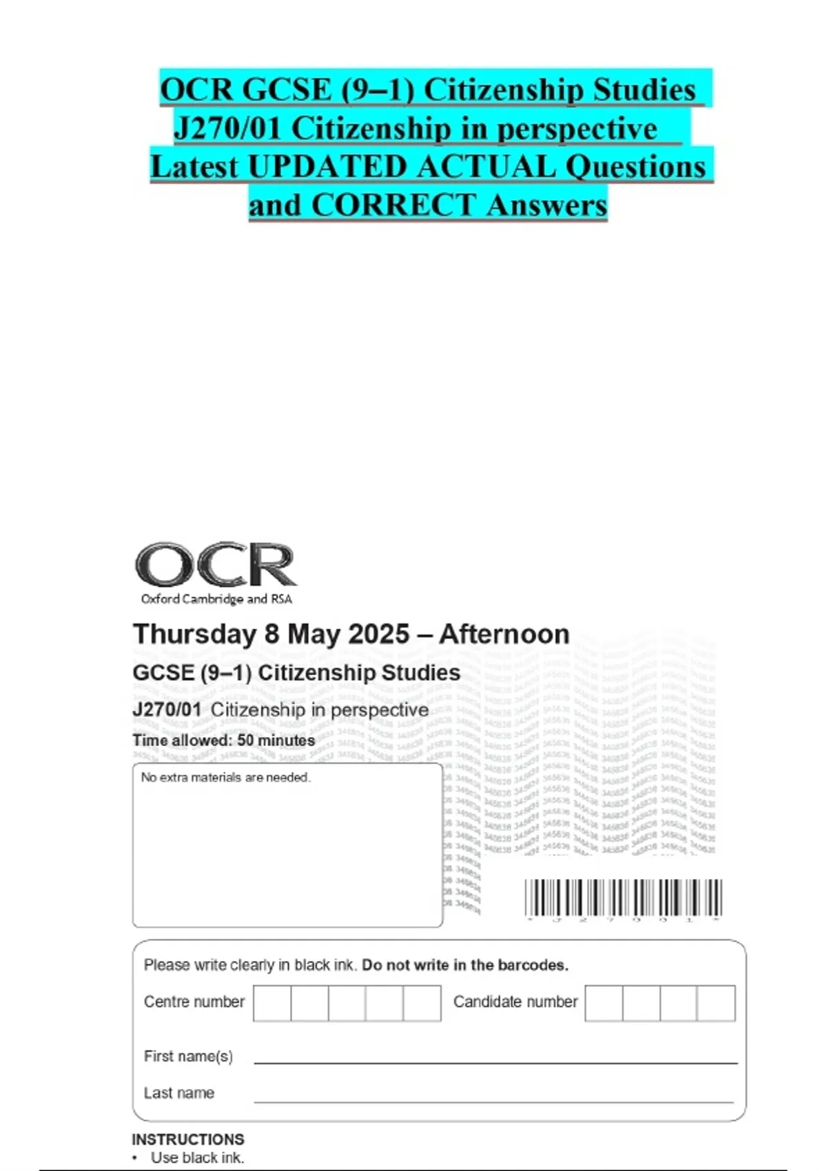 OCR GCSE (9–1) Citizenship Studies J270/01 Citizenship in perspective Latest UPDATED ACTUAL Questions and CORRECT Answers
