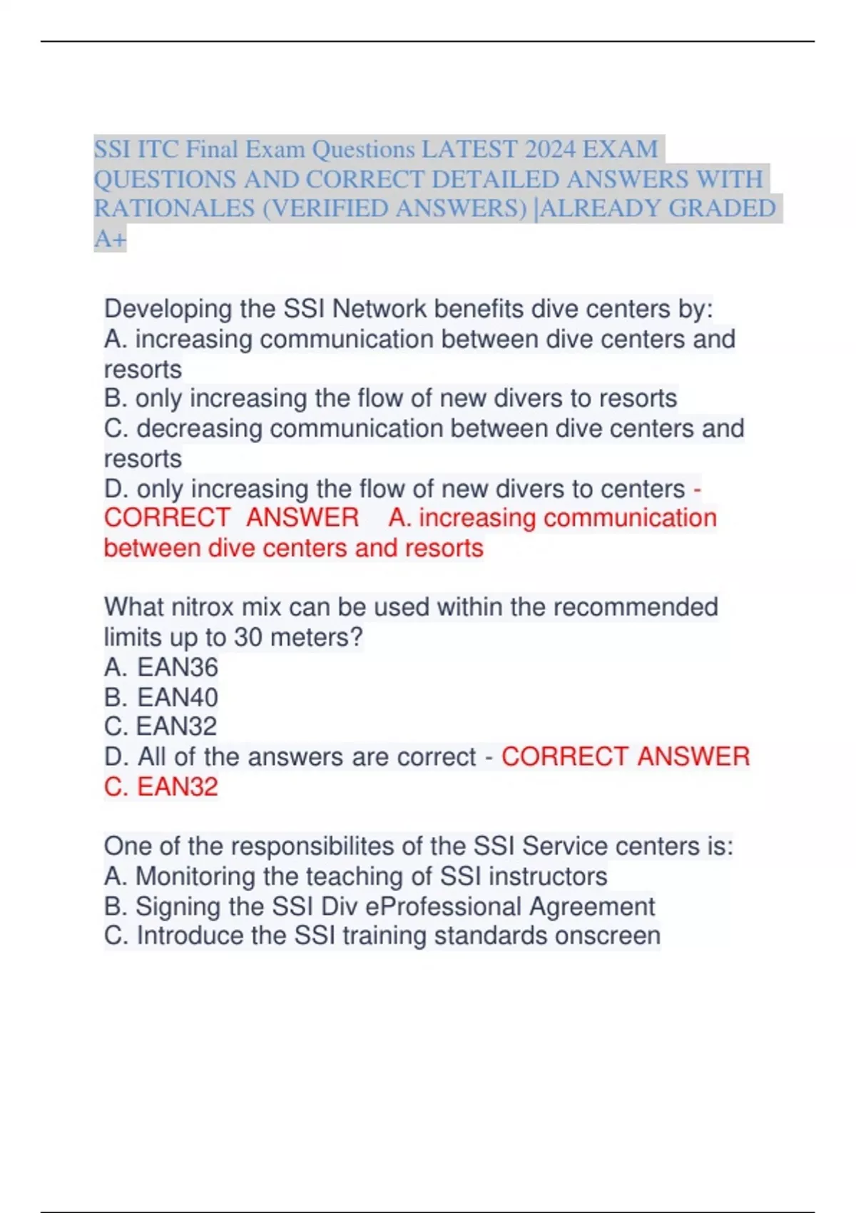 SSI ITC Final Exam Questions LATEST 2024 EXAM QUESTIONS AND CORRECT DETAILED ANSWERS WITH RATIONALES (VERIFIED ANSWERS) |ALREADY GRADED A+