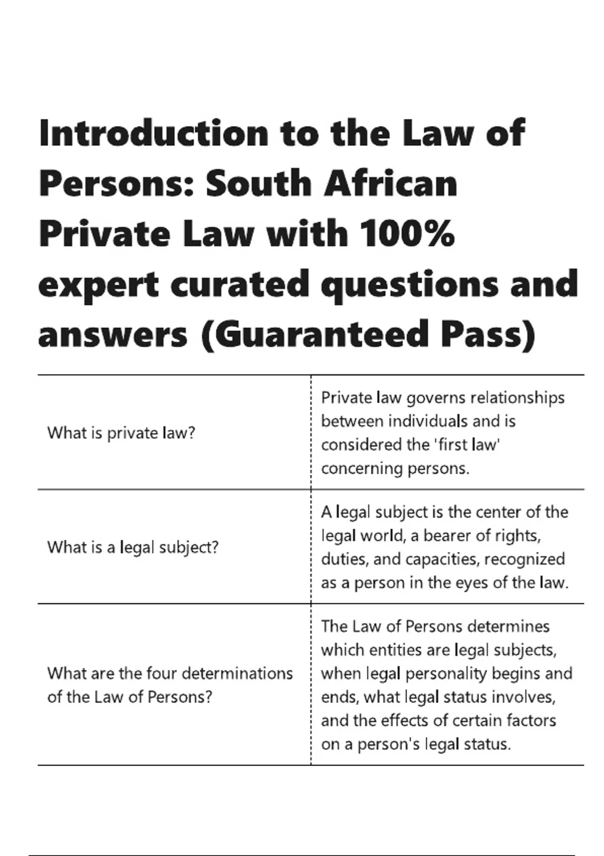 Introduction to the Law of Persons South African Private Law with 100- expert curated questions