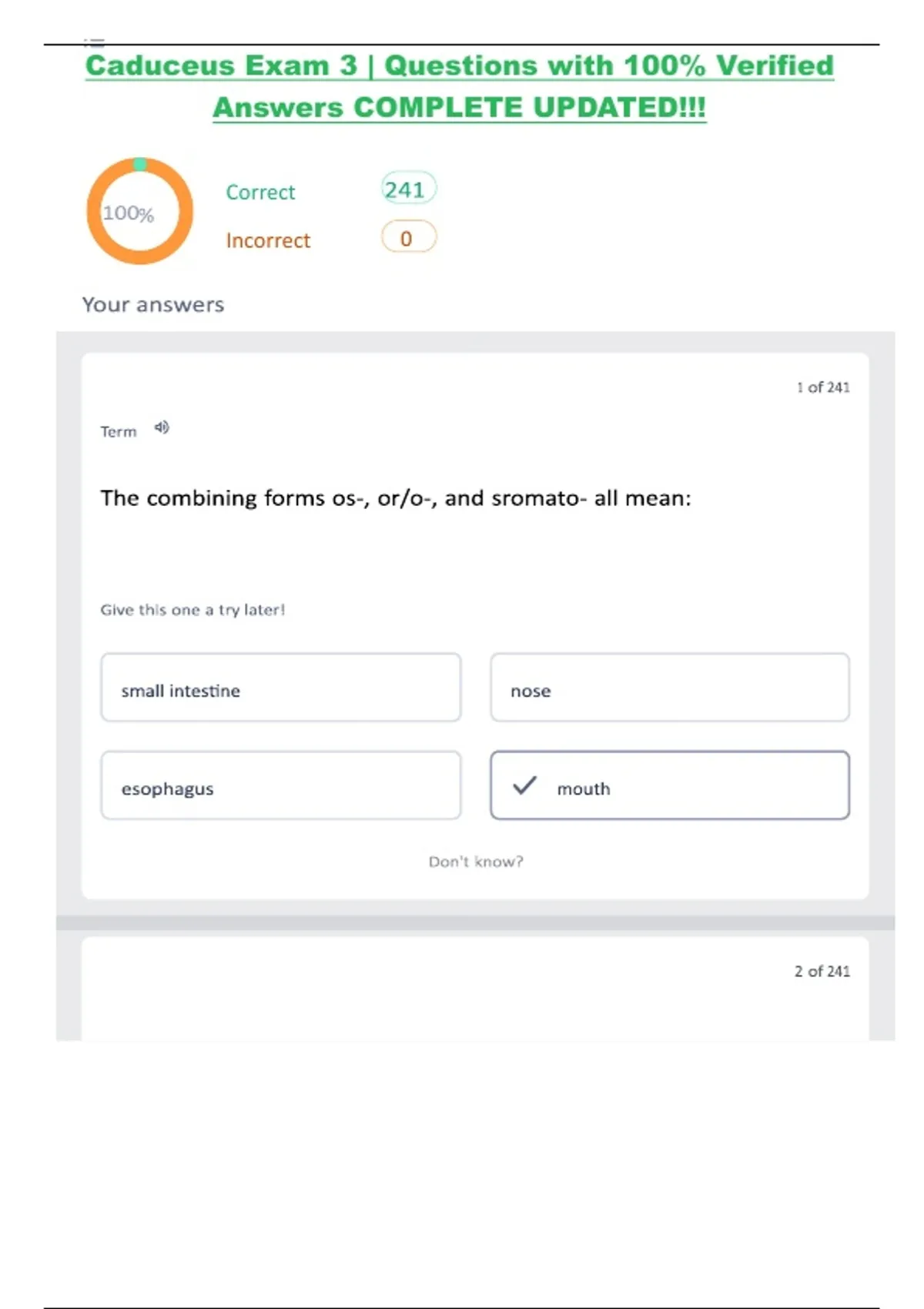 CADUCEUS (Latest Updates STUDY BUNDLE WITH COMPLETE SOLUTIONS) Questions and Verified Answers | Grade A+ | 100% Correct