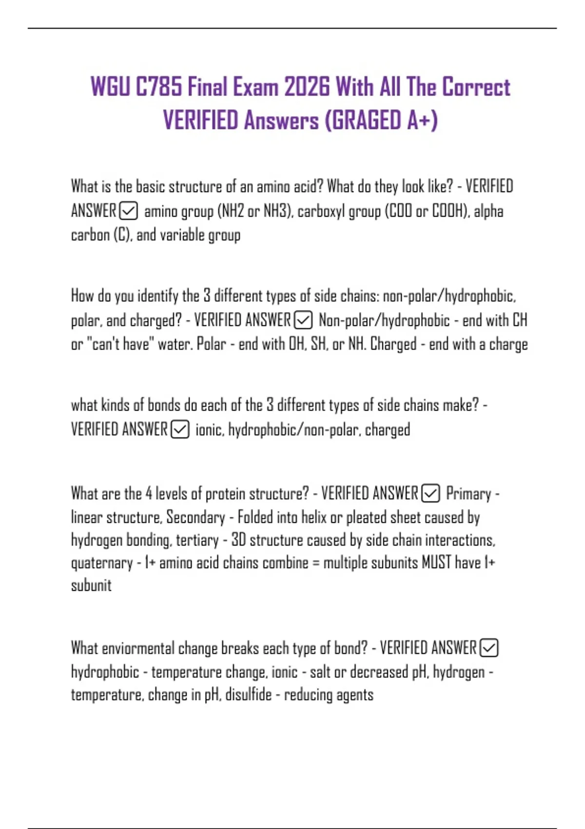 WGU C785 Biochemistry COMPLETE EXAM BUNDLE 2026 | Unit Exam + Final Exams | Currently Most Tested Questions | 100% Verified Answers & Solutions | A+ Graded