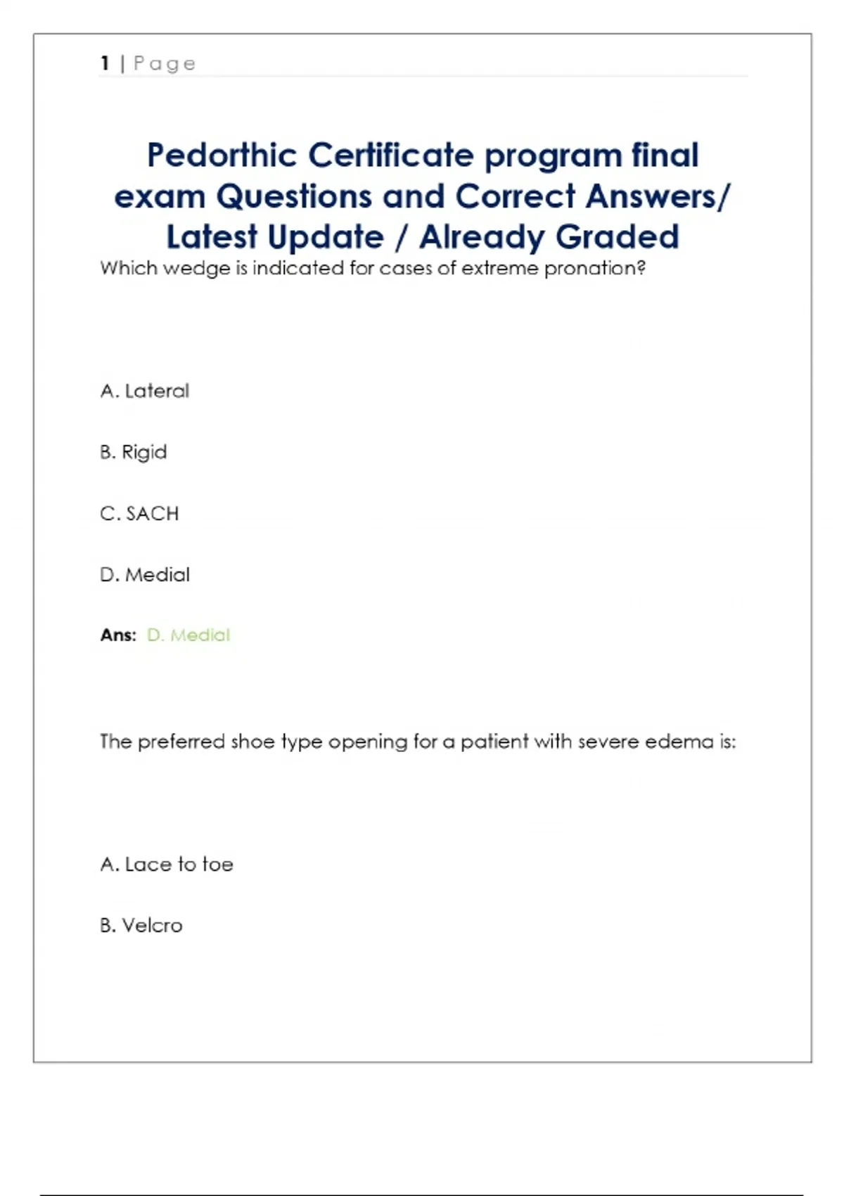 PEDORTHIC CERTIFICATE PROGRAM FINAL EXAM CERTIFIED EXAM QUESTIONS WITH ANSWERS