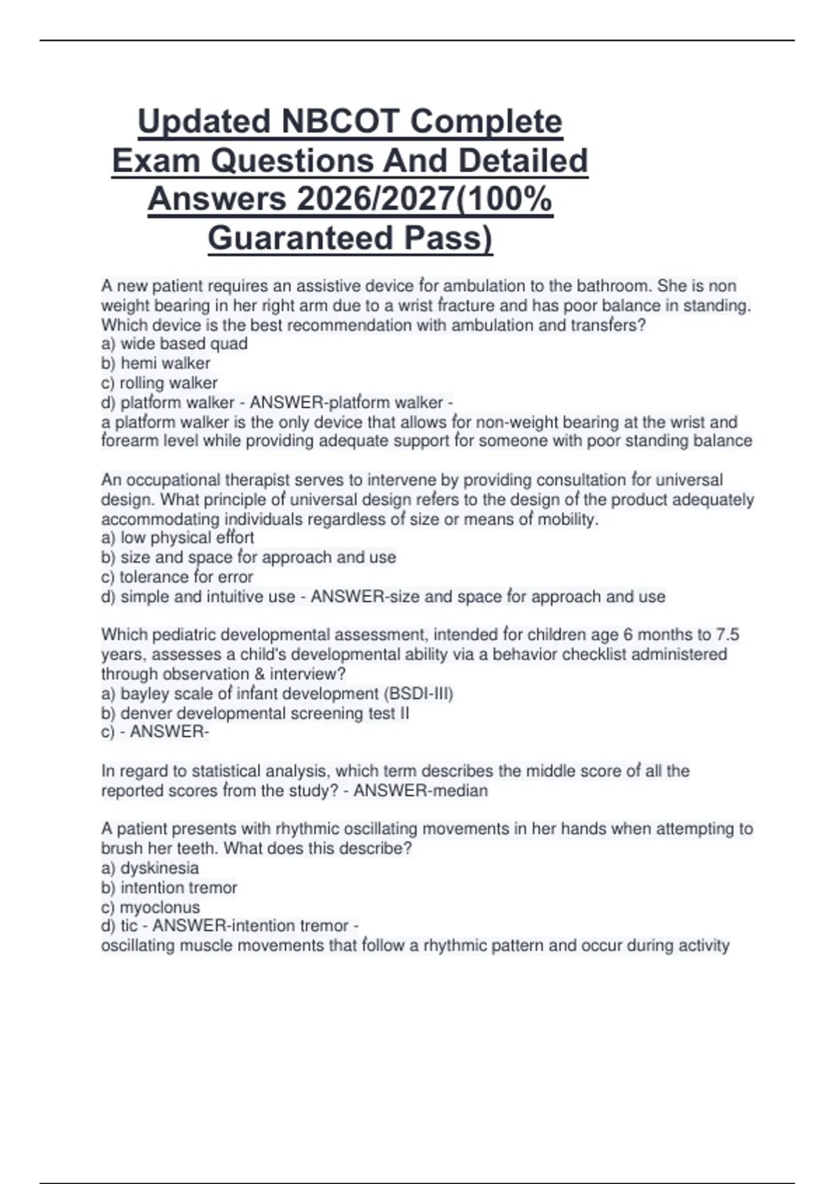 Package deal for NBCOT Latest NBCOT Test Questions And Answers 2026/2027(100% Guaranteed Pass)