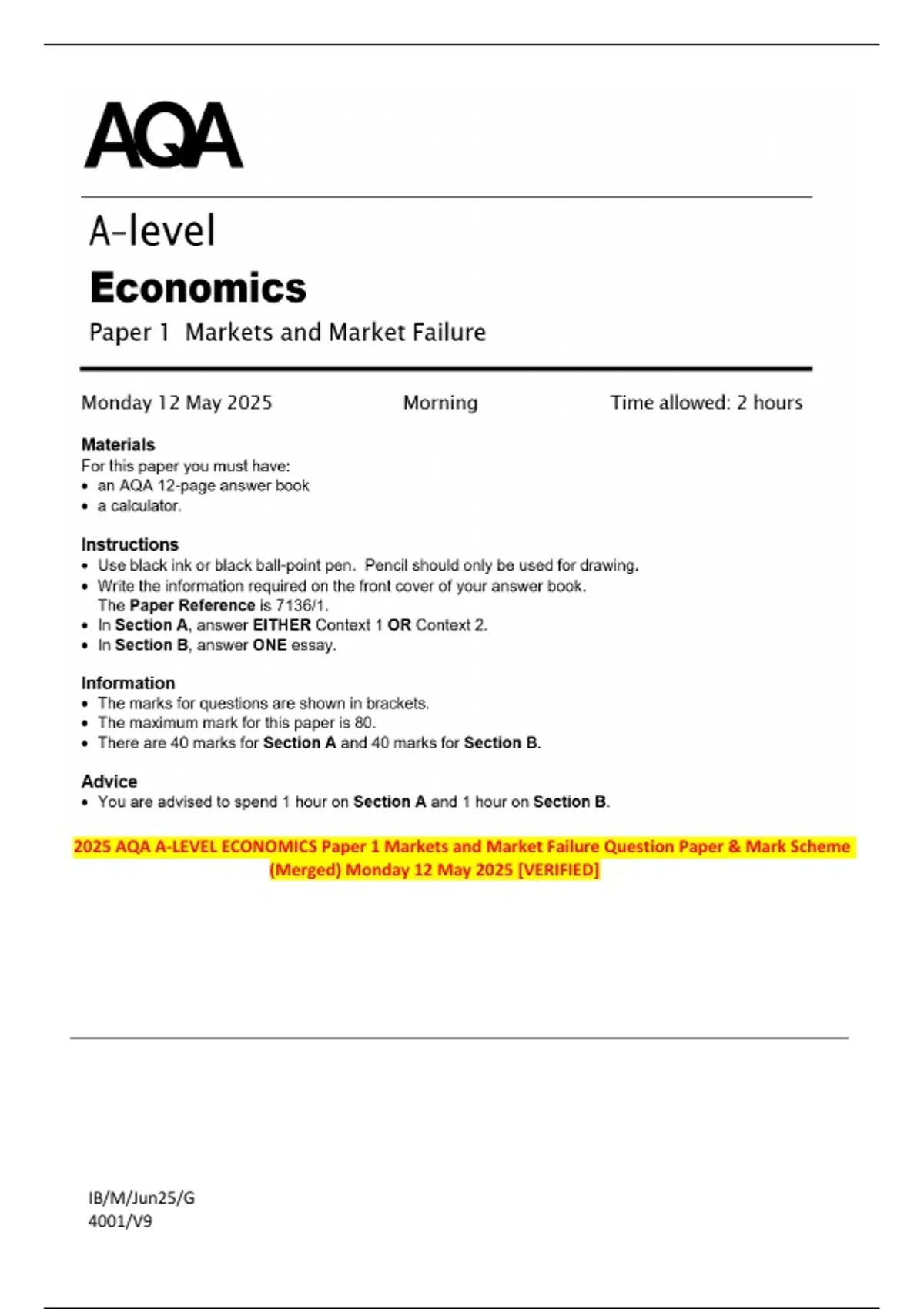 May 2025 AQA A-Level Economics | Combined Question Papers & Mark Schemes This bundle includes all May 2025 AQA A-Level Economics examination question papers together with their official mark schemes, providing a complete and reliable resource for structured revision and exam preparation.