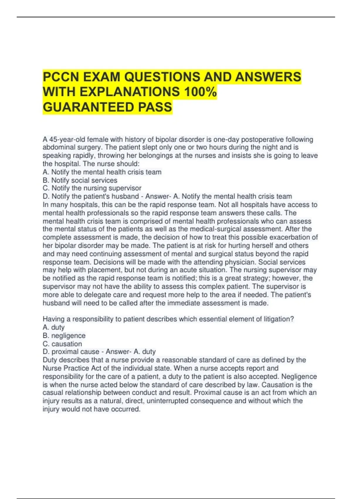 PCCN EXAM QUESTIONS AND ANSWERS WITH EXPLANATIONS 100% GUARANTEED PASS 2 Exam (elaborations) PCCN 2024 REVIEWED EXAM QUESTIONS AND ANSWERS ALL CORRECT 3 Exam (elaborations) PCCN CARDIAC EXAM QUESTIONS AND ANSWERS 4 Exam (elaborations) PCCN CERTIFICATION EXAM QUESTIONS WITH CORRECT ANSWERS 5 Exam (elaborations) PCCN PRACTICE EXAM QUESTIONS WITH