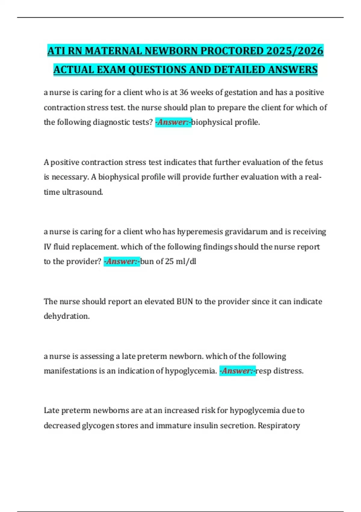 ATI Maternal newborn RN Maternal newborn CMS Maternal Newborn Nclex Maternal Newborn