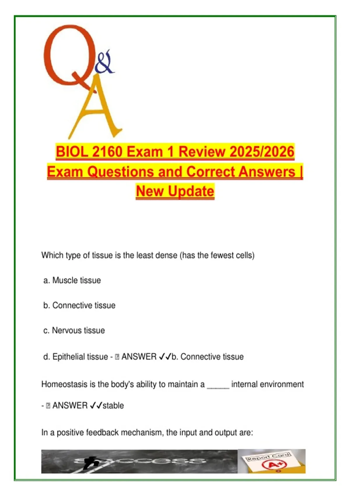 BIOL2160 EXAM COMPLETE PACKAGE DEAL