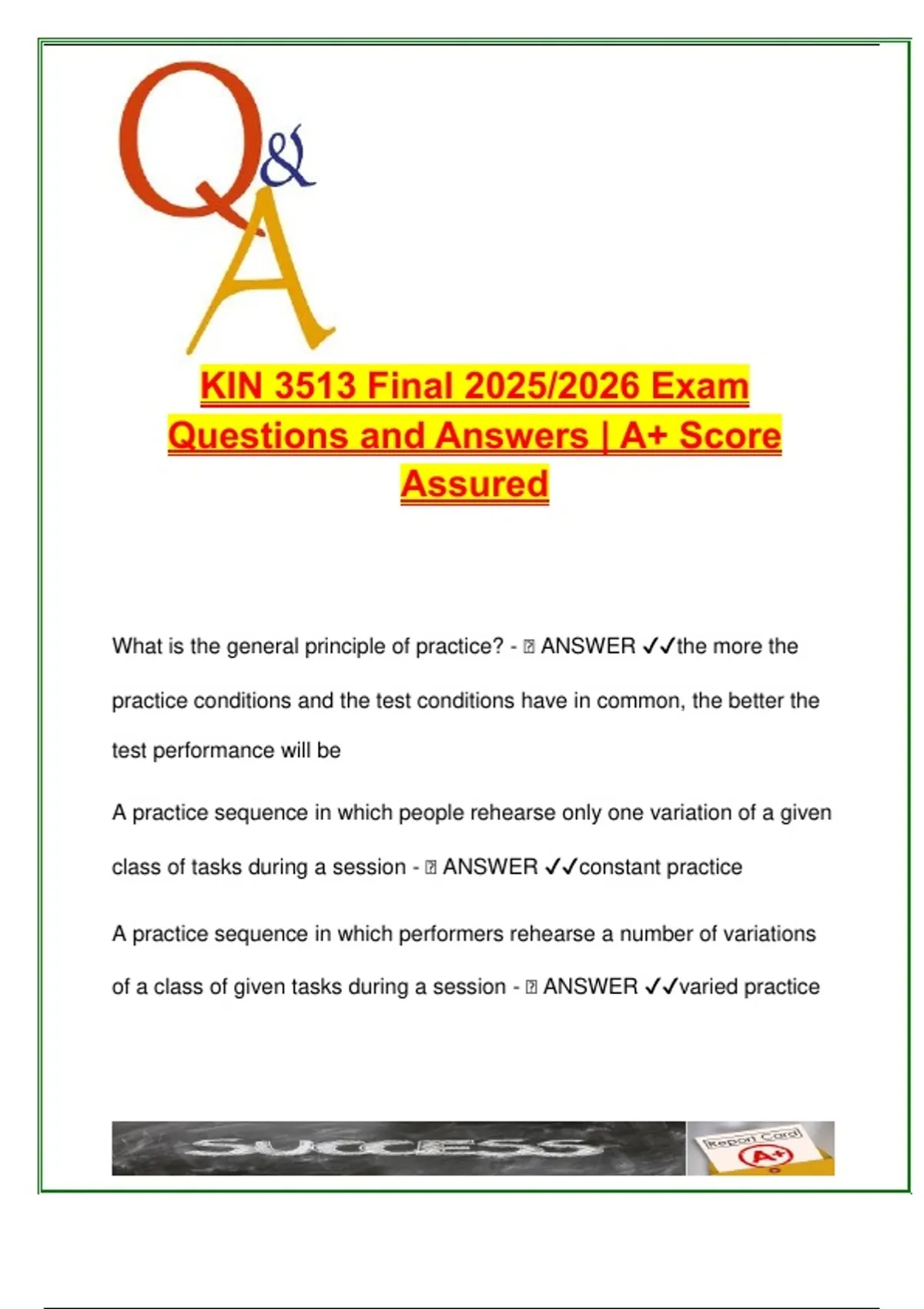 KIN 3513 EXAM COMPLETE PACKAGE DEAL
