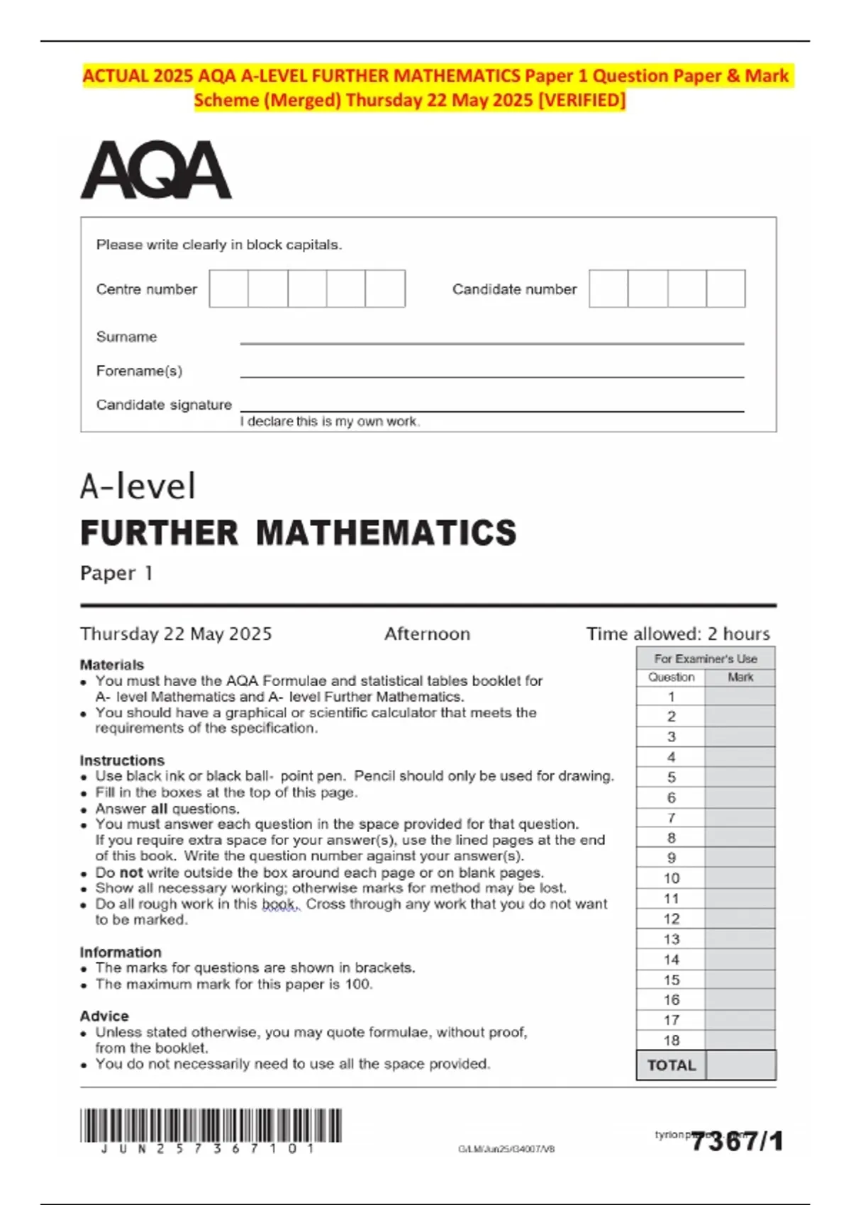 This comprehensive bundle includes all May and June 2025 AQA A-Level Mathematics and Further Mathematics examination question papers, covering Papers 1–3 in Mathematics and Further Mathematics (including Discrete, Mechanics, and Statistics), along with their official mark schemes, providing students with a complete and reliable resource for revisio