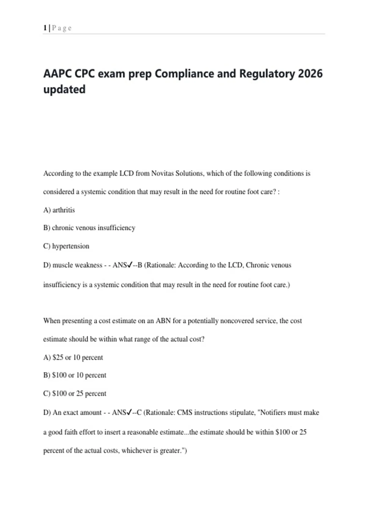 AAPC CPC FINAL EXAM REAL EXAM 3 LATEST VERSIONS EACH VERSION CONTAINS 100 QUESTIONS AND CORRECT ANSWERS(VERIFIED ANSWERS)|AGRADE