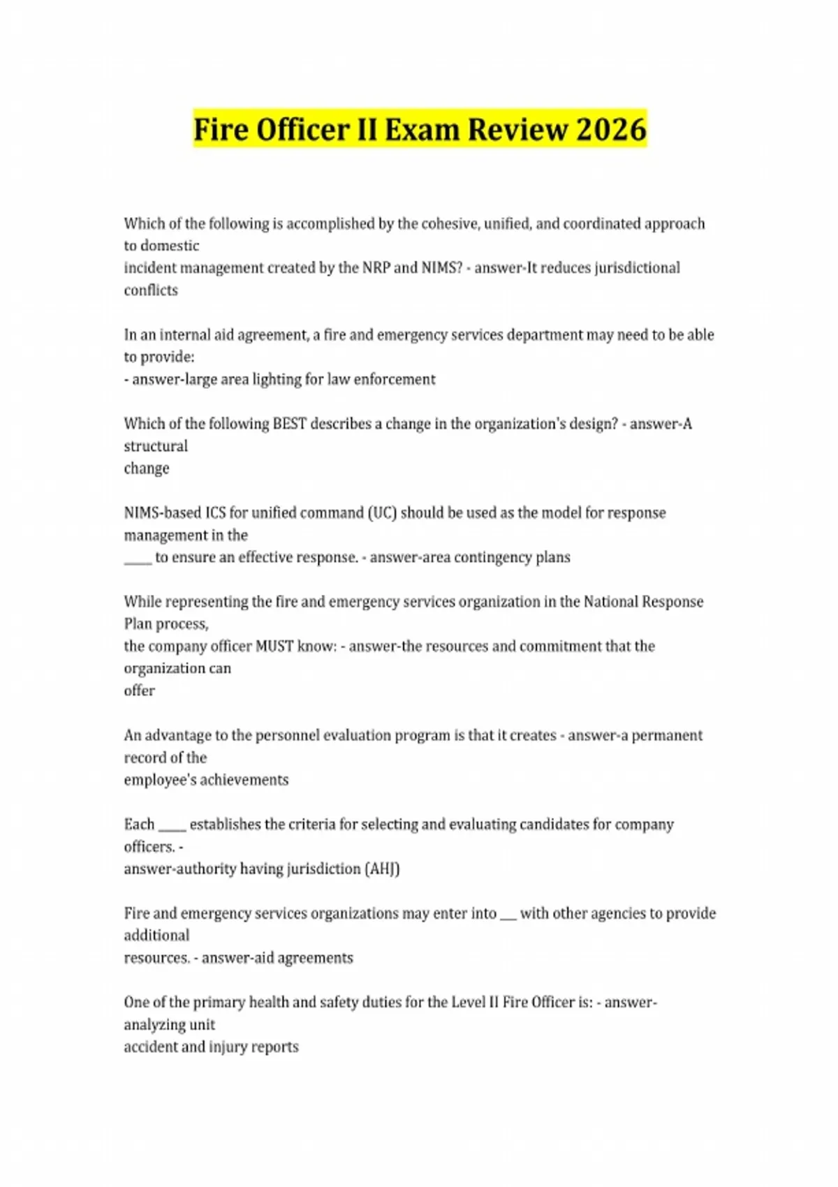 A targeted preparation bundle for Fire Officer II certification. Includes exam reviews, state exam coverage, and practice questions with answers to reinforce leadership, supervision, and operational command concepts for exam readiness.