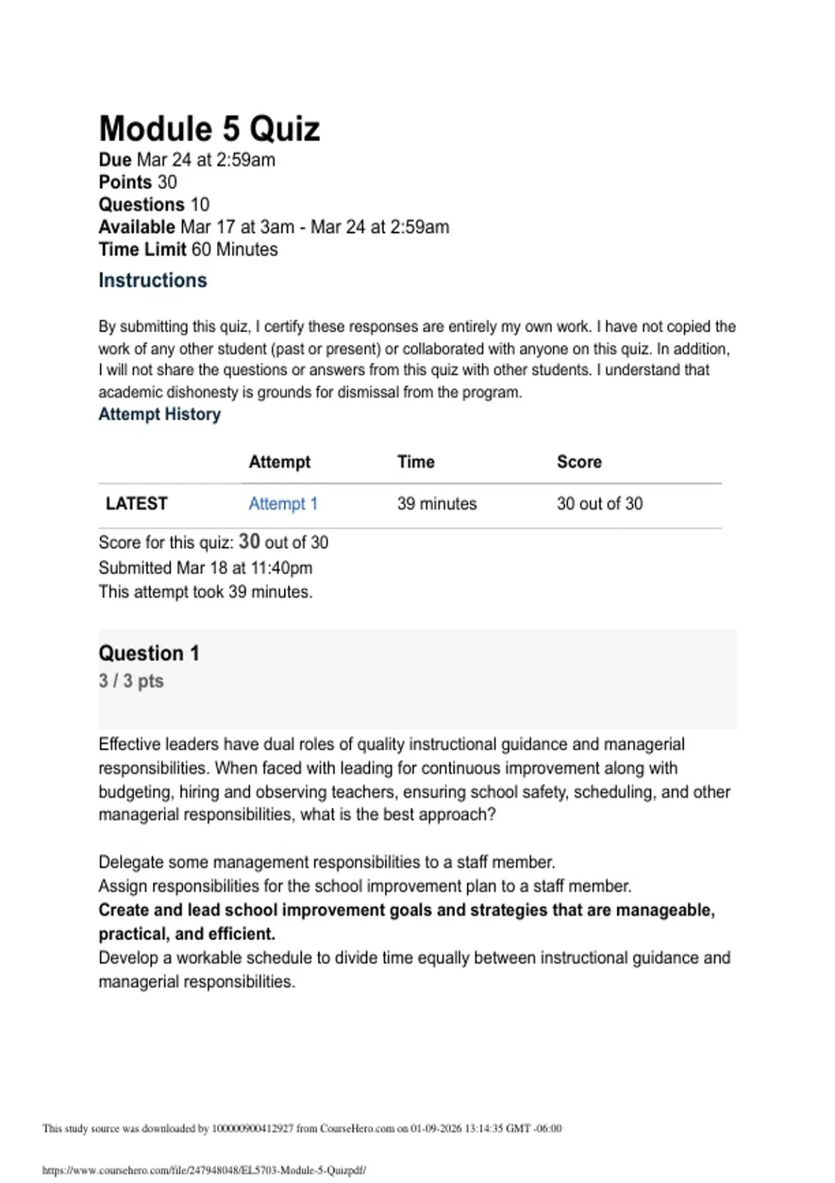 EL5053 Module 1 to 5 exam quiz package Deal new