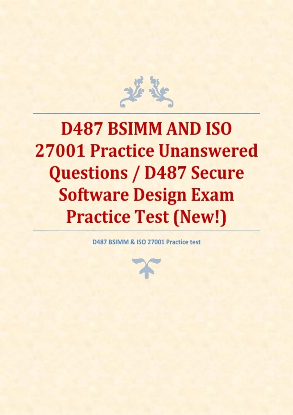 Bundle for D487 Pre-Assessment and D487 OA Exams Preparation with multiple quizzes and Pre-assessment Questions and Correct Answers/ D487 Secure Software Design Pre Assessment Exam Prep (Brand New!)