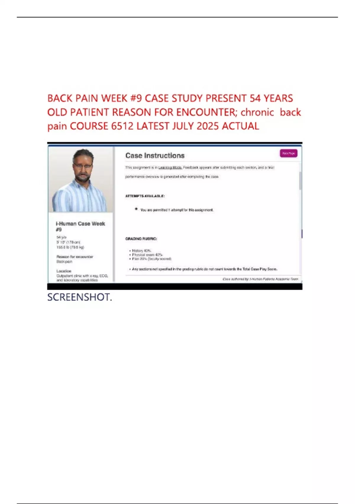 Looking for relevant and up-to-date study materials to help you ace your exams? Exammaster1 has got you covered! I offer a wide range of study resources, including test banks, exams, study notes, and more, to help prepare for your exams and achieve your academic goals. ***NURSING, MEDICINE & HEALTH CARE PRACTICE EXAMS WITH STUDY GUIDES*** Help With; : ESSENTIALS OF PSYCHIATRIC MENTAL HEALTH NURSING : ESSENTIALS OF PSYCHIATRIC MENTAL HEALTH NURSING: ACQ 1300 Fundamentals of Technology Security/Trans AHA ACLS ALL HESI EXIT ALL HESI FUNDAMENTALS AMLS. ANATOMY AND PHYSIOLOGY. ATI Capstone ATI Capstone Fundamentals ATI FUNDAMENTALS ATI LEADERSHIP ATI MED-SURG ATI Med Surge ATI PN COMPREHENSIVE. ATI PN MED SURG ATI PN Mental Health ATI PN PHARMACOLOGY ATI RN LEADERSHIP ATI RN LEADERSHIP. ATI RN LEADERSHIp. ATI TEAS 6 ATI TEAS 7 ATI TEAS 7 Biology ATI TEAS 7 MATH ATLS10. Advanced Cardiovascular Life Support Advanced health assessment All PQ's Applied Pathophysiology. BIB-106. BIB-107. BIB 106. BIBLICAL THEOLOGY BIO 252. BIOD 121 Nutrition. BIOD 151 A&P 1 BIOS 252. BUSINESS EMBA. Basic Anatomy and Physiology Burns Pediatric Primary Care CANADIAN FUNDAMENTALS OF NURSING, CLAYTON’S BASIC PHARMACOLOGY CLAYTON’S BASIC PHARMACOLOGY FOR NURSES COMPREHENSIVE MENTAL HEALTH CWV 101 TOPIC 3 Canadian Fundamentals of Nursing. Civic Proficiency Complications of Pregnancy Contemporary Nursing EDELMAN: HEALTH PROMOTION THROUGHOUT THE LIFE SPAN ESSENTIALS OF HUMAN ANATOMY AND PHYSIOLOGY EXIT HESI EXIT HESI 2022 ANSWERED ALREADY GRADED A Essentials of Pediatric Nursing Exit HESI. FIN 4486 FOCUS ON NURSING PHARMACOLOGY 8TH EDITION BY KARCH FOUNDATIONS FOR POPULATION HEALTH IN COMMUNITY/ PU Family RN. G150/PHA1500 Module 06 HEALTH ASSESSMENT IN NURSING HESI - ANATOMY & PHYSIOLOGY HESI. HESI A&P V1 HESI A2 . HESI A2 ANATOMY & PHYSIOLOGY HESI A2 ANATOMY & PHYSIOLOGY . HESI A2 GRAMMAR HESI A2 MATH HESI A2 MATHS HESI A2 READING HESI A2 READING COMPREHENSION HESI A2 V1/V2 BIOLOGY HESI A2 VOCABULARY HESI A2. HESI COMPUTERIZED HESI Comprehensive HESI Comprehensive. HESI EXIT . HESI EXIT V3 HESI FUNDAMENTALS HESI Fundamentals. HESI Live HESI MED HESI MED-SURG HESI MENTAL HEALTH. HESI Mental Health RN HESI NCLEX-RN HESI PHARMACOLOGY HESI PHARMACOLOGY PRAC HESI PN HESI PN Comprehensive. HESI RN . HESI RN. HESI RN FUNDAMENTALS HESI RN FUNDAMENTALS HESI RN FUNDAMENTALS HESI_RN_EXIT Heizer operations management Hesi A2 V2 Hesi Fundamentals Practice Evolve. Hesi Mental Health Specialty Hesi Pediatric. IMMUNIZATION CERTIFICATION (WITH CITATIONS INTRODUCTION TO MATERNITY AND PEDIATRIC NURSING 7E Indiana MPJE Introduction and Issues in Systematic Theology Introduction and Issues in Systematic Theology. Introductory Maternity and Pediatric Nursing 4th E JOURNEY ACROSS THE LIFE SPAN 6TH EDITION POLAN LETRS Unit 1 Assessment. LETRS Unit 2 LETRS Unit 6 LETRS Units 5 - 8 Pre & Post LJU 4801 LML4810. MATERNAL CHILD NURSING CARE MCKINNEY: EVOLVE RESOURCES FOR MATERNAL-CHILD MEDICAL-SURGICAL NURSING 7TH EDITION. LINTON MATTE MEDICAL SURGICAL NURSING. MED SURG HESI. MED SURG HESI EXIT MICROBIOLOGY MSN 571PHARM N4325 KNOWLEDGE NR 304. NR 317 NR 509. NR 511. NR 602. NRS306 OB Maternal Child Nursing NSG 6020 NSG 6020 ) NUR 301 HESI RN NUR 513 . NUR513. NUR 602 NURS 231 NURSING. NURSING NR 452 NURSING PHARMACOLOGY OB . OB HESI PATHOPHYSIOLOGY. PEDIATRICS - HESI PHARMACOLOGY AND THE NURSING PROCESS PN. PORTAGE LEARNING PRINCIPLES OF PEDIATRIC NURSING PSYCHIATRI HESI MENTAL HEALTH RN PSYCHOPHARMACOLOGY DRUGS THE BRAIN AND BEHAVIOR Pearsonvue Pediatric Nursing. Peds HESI Pharm Postpartum Hemorrhage Prophecy RN Pharmacology A Psychiatric Assessment Psychopharmacology, RADIOGRAPHIC POSITIONING AND RELATED ANATOMY RBS. RELB 104 RN. RN ATI MATERNAL NEWBORN RN Adult Medical Surgical RN HESI. Rev Maternity TEXAS MPJE 2022 The Growth of Nursing The History and Interviewing Process The Human Body in Health and Illness, 6th Edition VIROLOGY EXTRACTED SPOT Virology spot , MBCHB 2 EOY. WOMENS HEALTH Wst 371. _NR 509 foundation and adult health nursing nursing. KINDLY LEAVE ME A REVIEW.