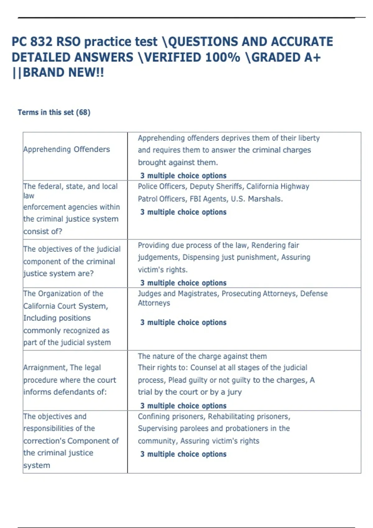 PC 832 Study Guide &PRACTICE EXAM NEWEST VERSION WITH COMPLETE QUESTIONS AND CORRECT DETAILED ANSWERSVERIFIED 100% ALREADY GRADED A+BRAND NEW