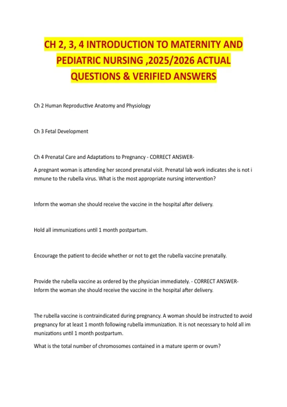 Description: Master the Leifer curriculum with this ultimate final review bundle. Includes verified Q&A and core concepts for Chapters 1-5, 9, and 16. Cover everything from QSEN competencies and prenatal milestones to postpartum recovery and infant development. Perfect for NCLEX prep, it ensures you grasp vital nursing assessments and clinical safe